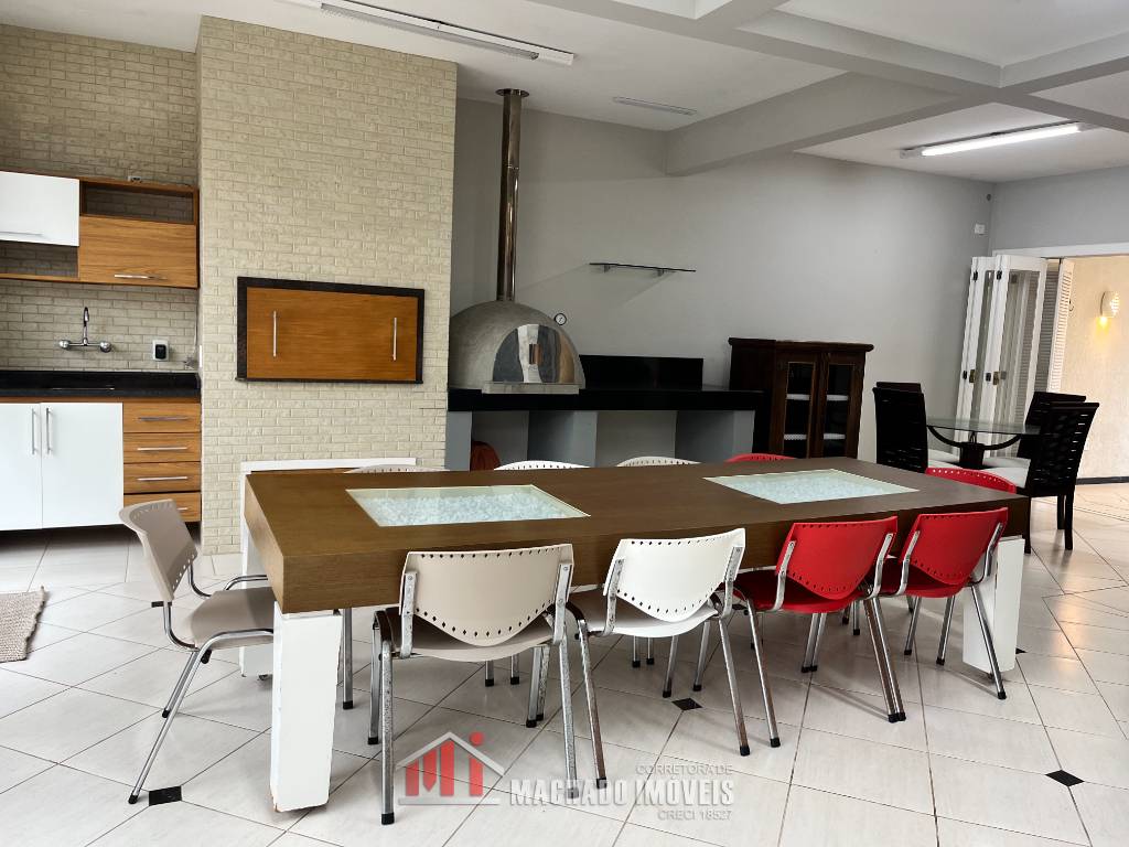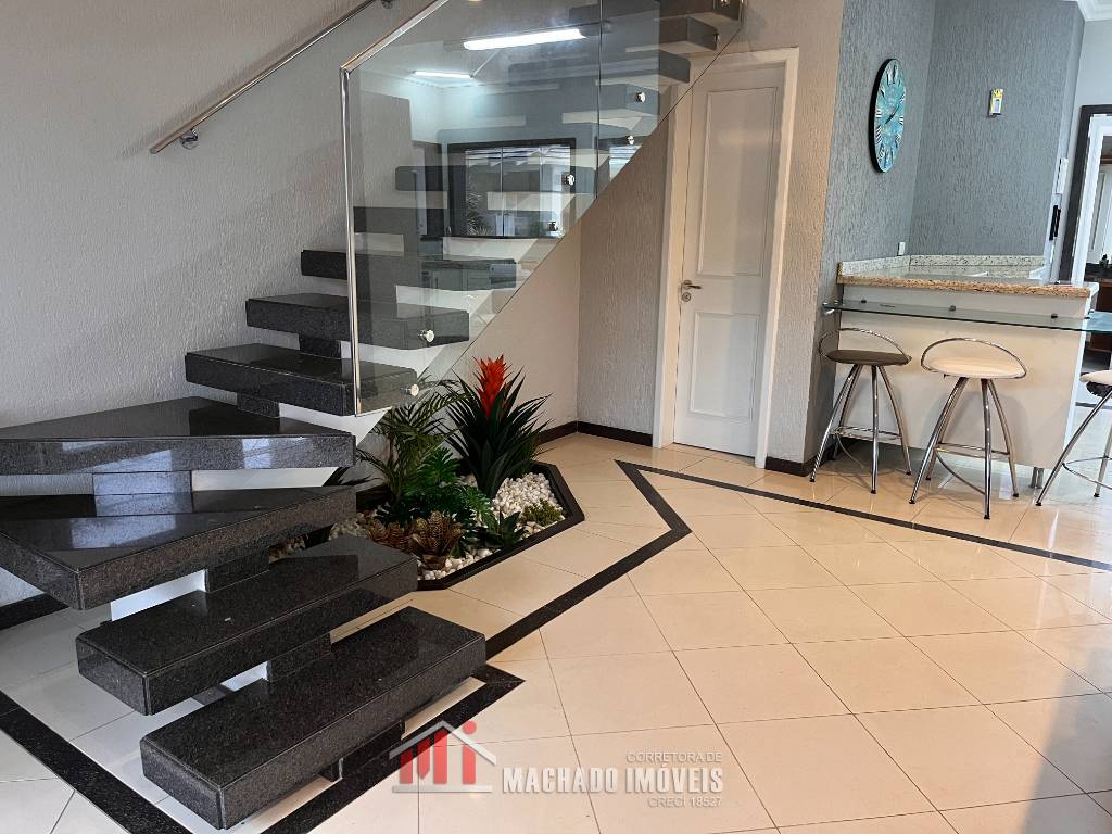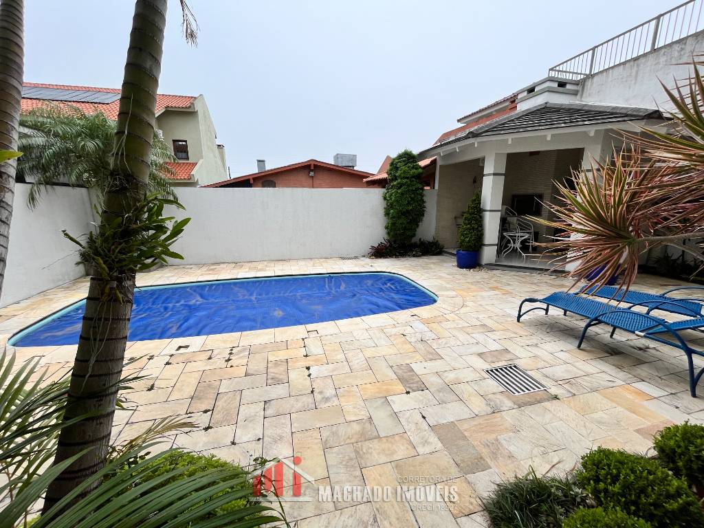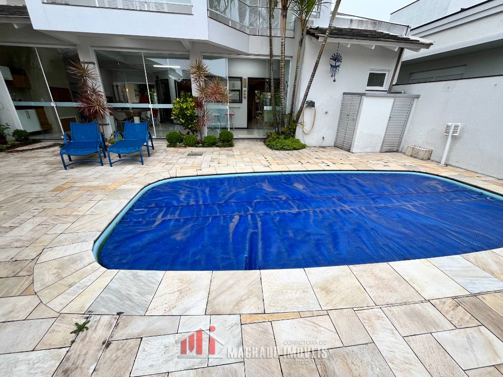 Sobradão a 150m/mar, 03 dormitórios, todos com sacada, sendo 01 suite leste, 02 banheiros sociais, lavabo, ampla sala de estar, cozinha, lavanderia, espaço gourmet com churrasqueira e forno a lenha, espaço com piscina e quiosque com churrasqueira, pátio fechado