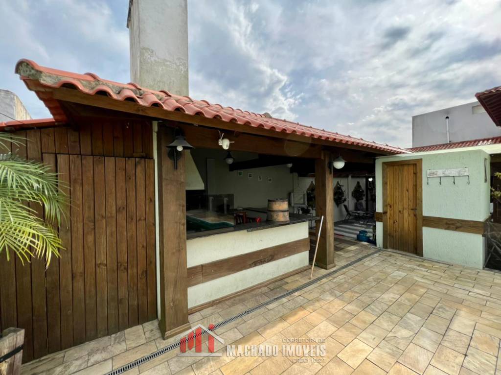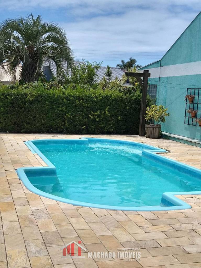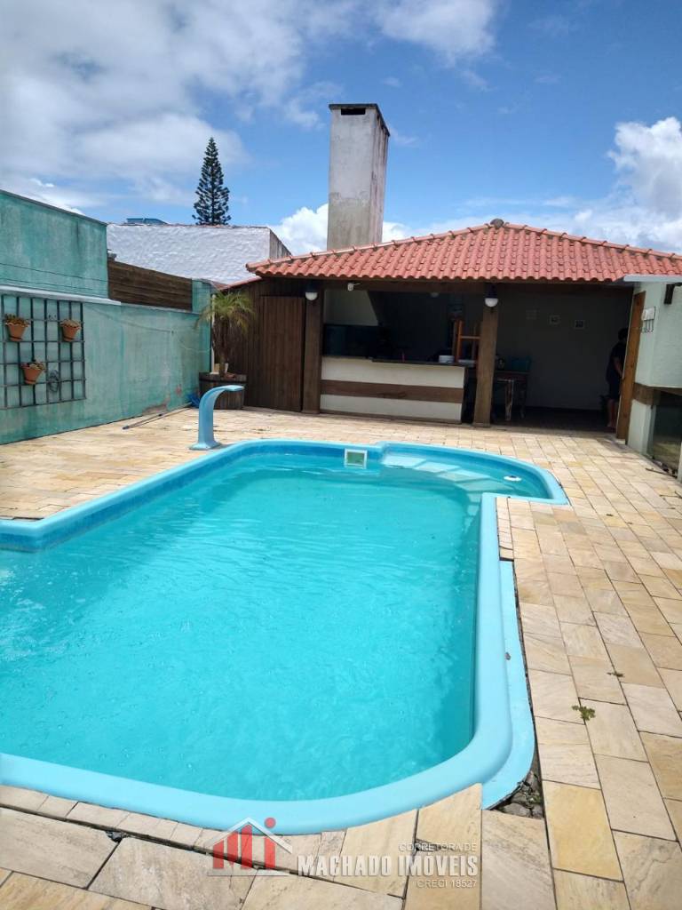 Casa estilo sobrado, todos os dormitórios no andar superior, 03 e 1/2 dormitórios, sendo 1 suíte, 1 banheiro no andar superior, mais banheiros na parte térrea, sala, cozinha garagem, pátio fechadp, quiosque e PISCINA, zona residenial, em torno de 1000m/mar