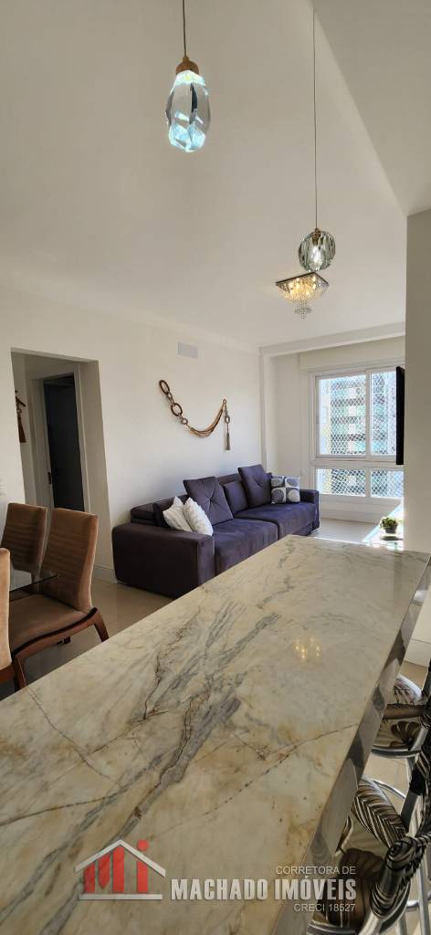 CAPÃO DA CANOA! Apto 73m² área privativa, mobiliado e decorado, 2 suítes + dependência, lavabo, sala, cozinha, box c/ depósito, oeste sul, 50m da praça Luis Bassani. Estuda proposta à vista
