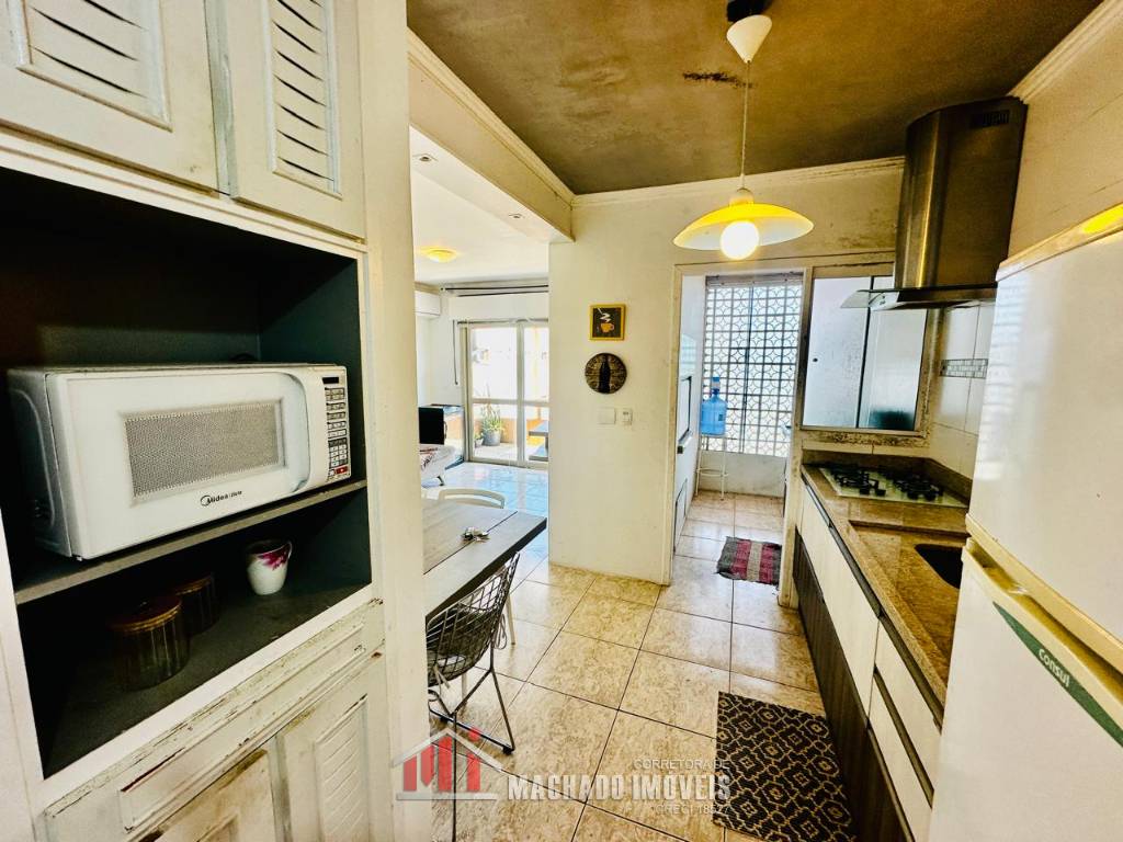 Apto mobiliado, transformado em 02 dormitórios, 1 banheiro social, ampla area de serviço com churrasqueira, cozinha e sala de estar com sacada e vista mar, condomínio com infra de piscinas, em torno de 150m/mar