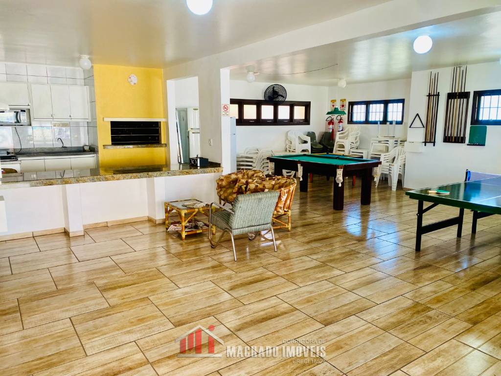 Apto 01 e 1/2 dormitório, sala e cozinha americana, banheiro social, sacada integrada, área de serviço com churrasqueira, frente pra ciclovia, piso reformado, box para veiculo interno, mobiliado, 800m/mar, com infra de piscinas