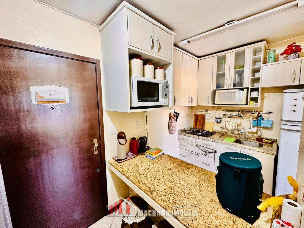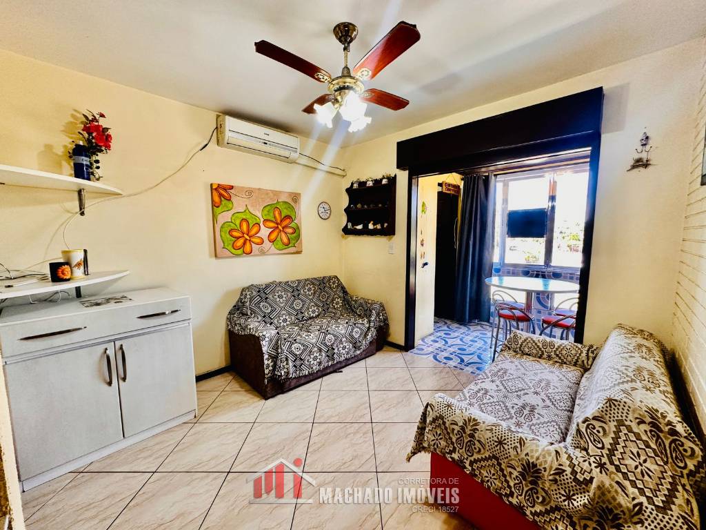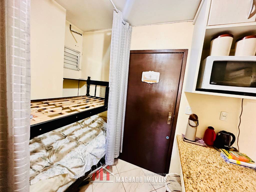 Apto 01 e 1/2 dormitório, banheiro social, sala e cozinha americana, sacada fechada de vidro, com churrasqueira e área de serviço, mobiliado, box coberto para veículo, condomínio próximo ao comércio, e a 400m/mar, com infra de piscinas. Aceita financiamento bancário.