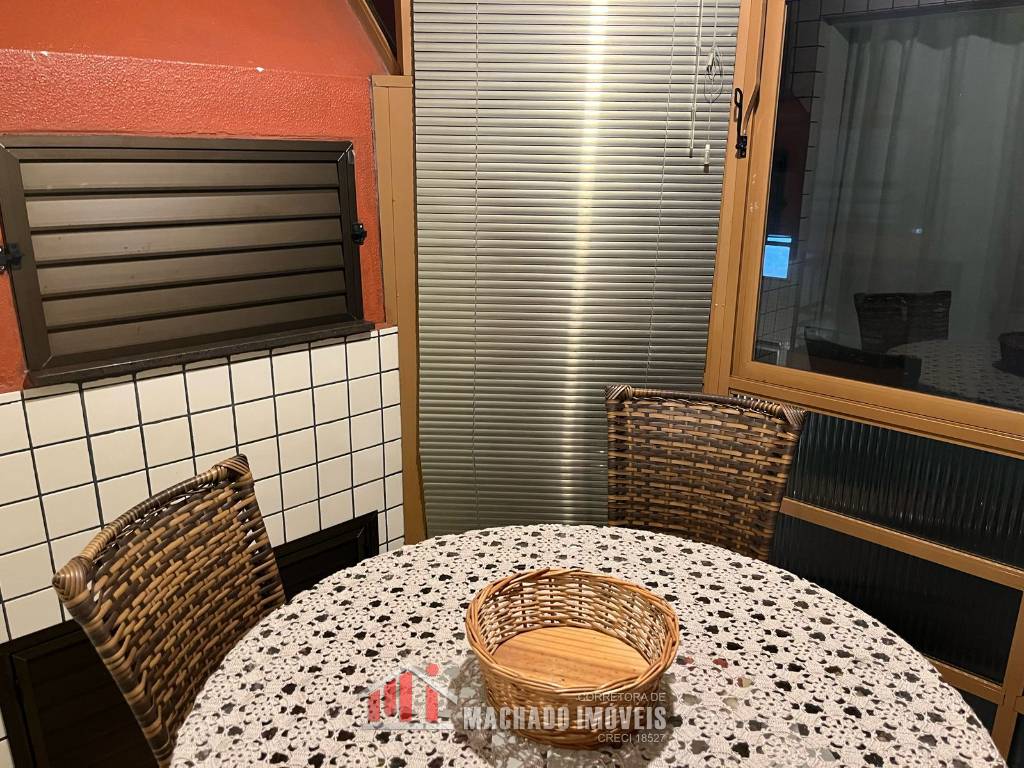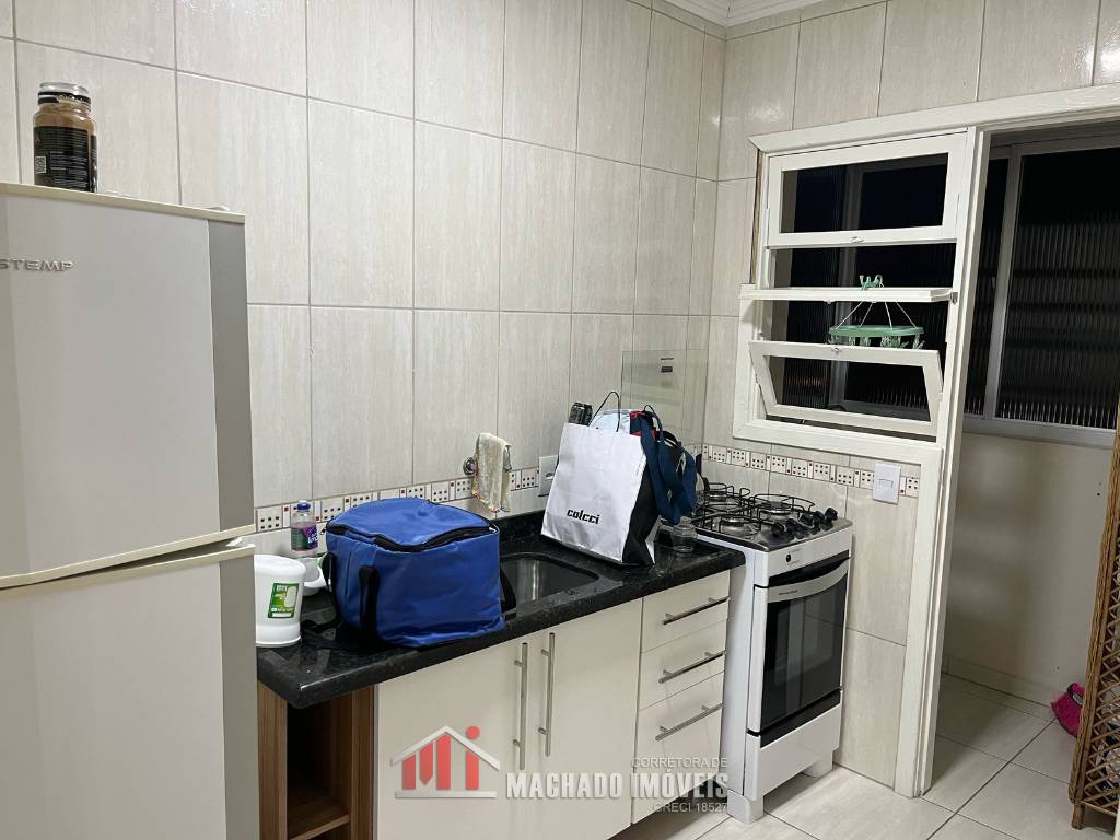 Apto A 100m/mar, com 01 dormitório, sala, cozinha, banheiro social, área de serviço, sacada fechada c/ churrasqueira, semi-mobiliado, box para veículo Aceita financiamento bancário