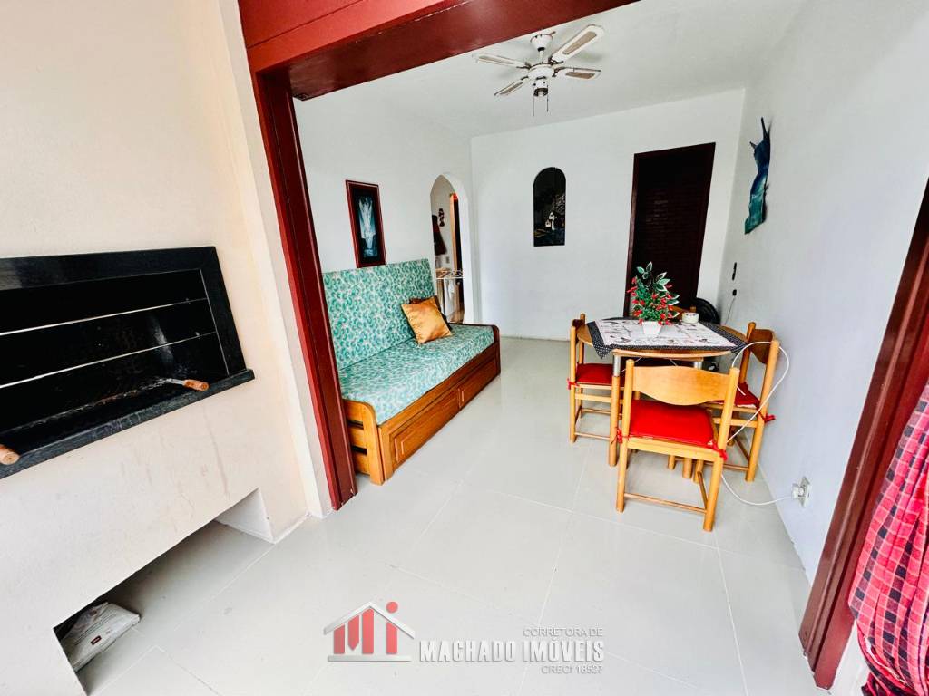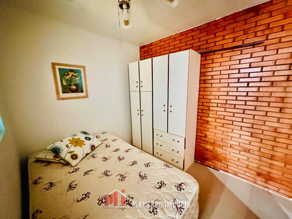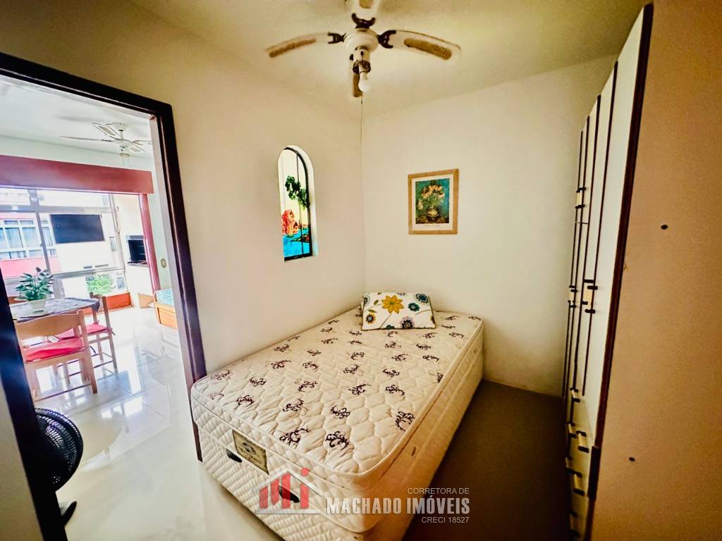 Apto transformado em 01 dormitório, sala de estar, cozinha, área de serviço, banheiro social, sacada fechada com churrasqueira, mobiliado, box, apenas 300m/mar. Aceita financiamento bancário e veículo
