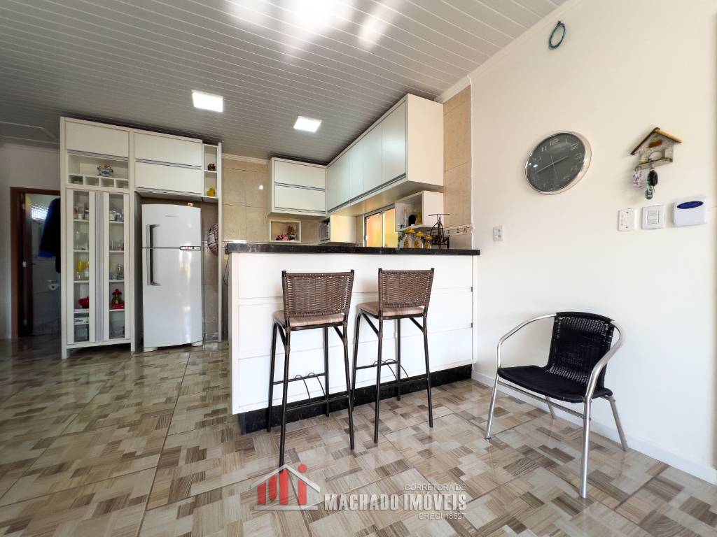 Casa 3 dormitórios sendo 01 suíte, banheiro social, cozinha americana, área de serviço, churrasqueira + fogão campeiro, 190m² construídos, 2 vagas de garagem, pátio na frente e nos fundos, terreno 12 x 25 metros, piscina. Anexo nos fundos: 3 peças (quarto, cozinha, banheiro).