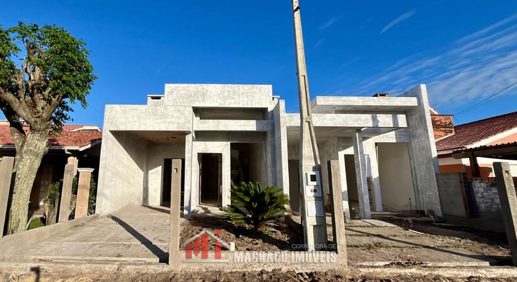 Casa nova em Capão Novo, construção Geminada ALTO PADRÃO, projeto moderno, 02 dormitórios, sendo 1 suíte, banheiro social, cozinha gourmet com bancada, Living integrado, pé direito duplo no estar e jantar, garagem, apenas 600m/mar e próximo ao comércio.