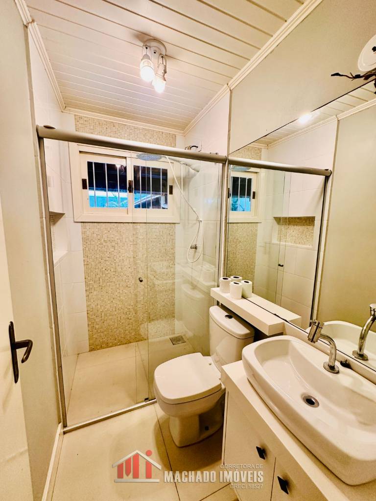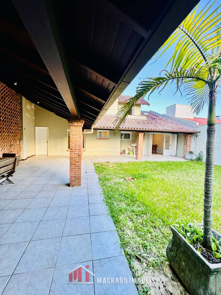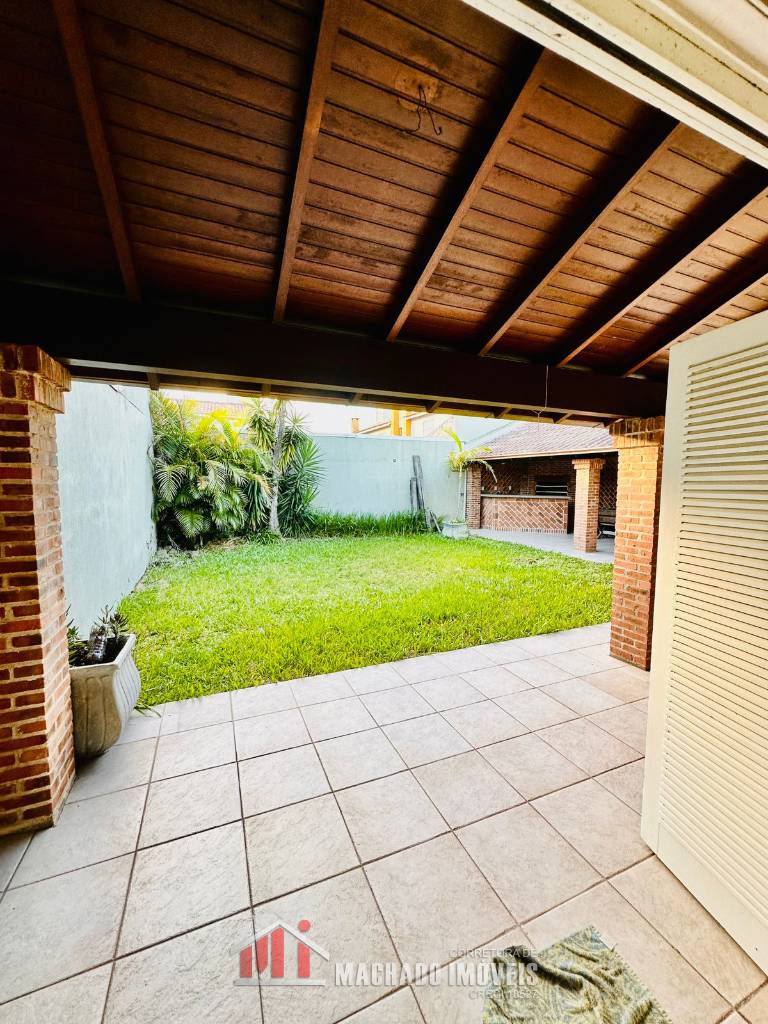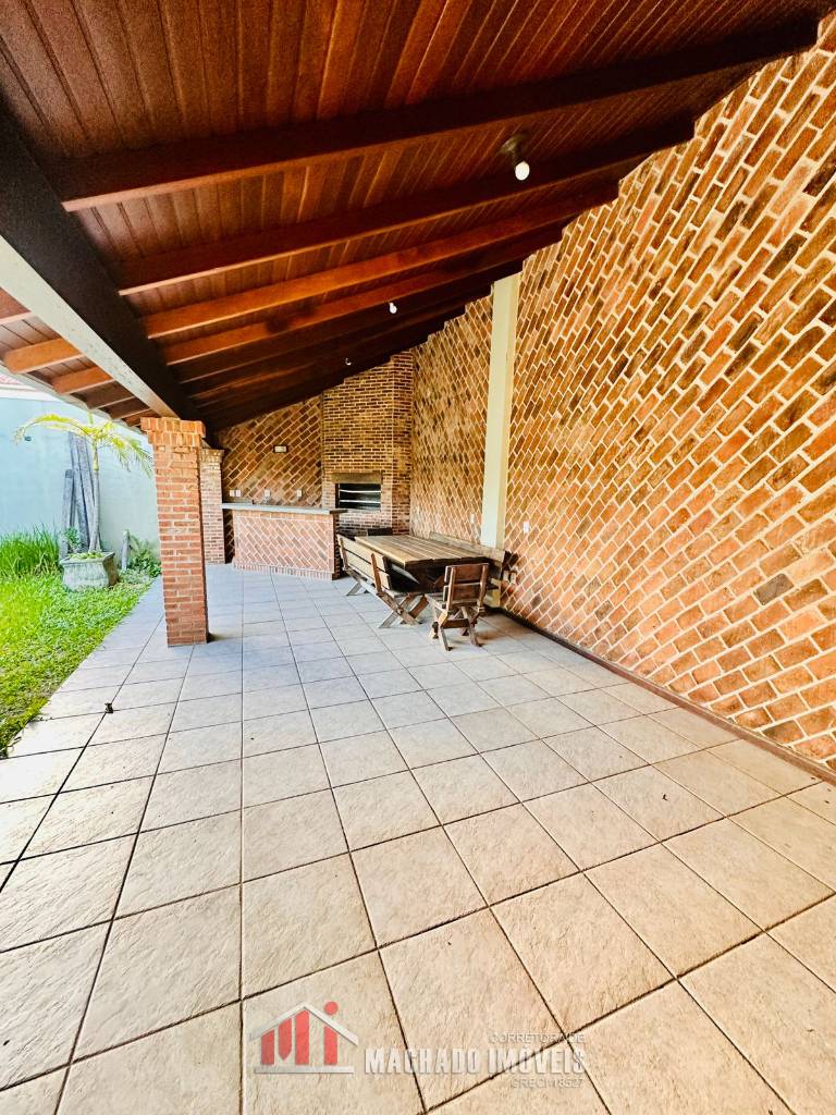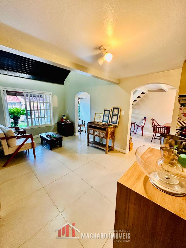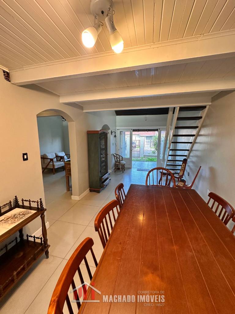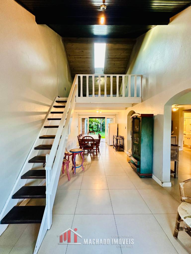 Casa ampla, 03 dormitórios, sendo 01 dormitório térreo, suite no andar superior, mezanino com detalhe no teto para visualização noturna sala de jantar, sala de star com cozinha, banheiro social, pátio grande e murado nos fundos com área gourmet, lavanderia, garagem, em torno de 600m/mar Estuda parcelamento direto