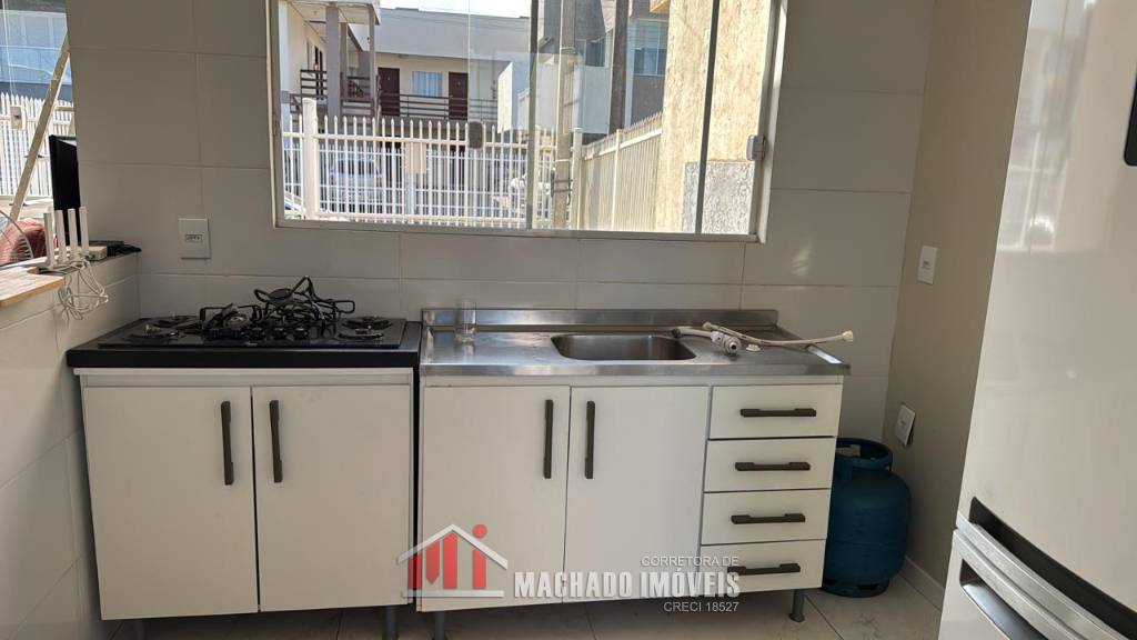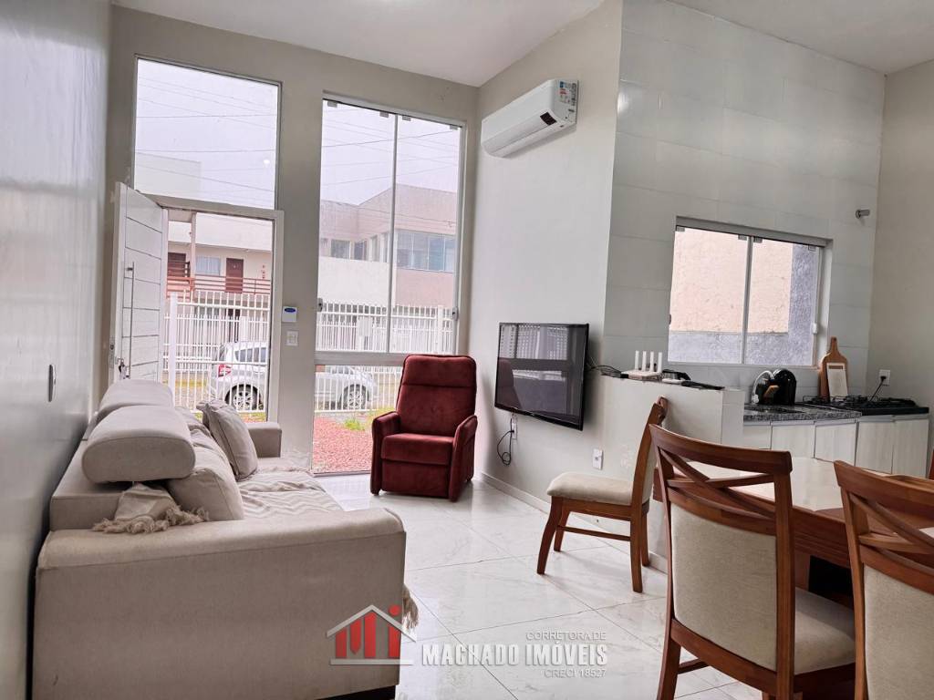 Casa geminada 02 dormitórios, sala e cozinha americana, banheiro social, churrasqueira, piso de porcelanato, gesso, ...