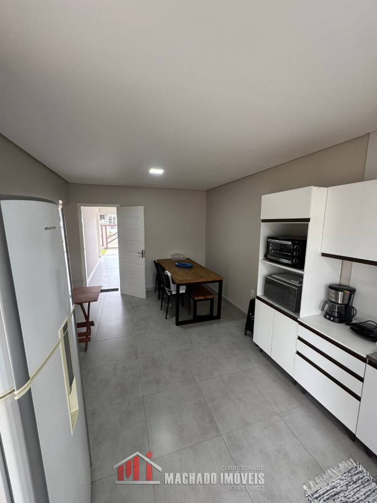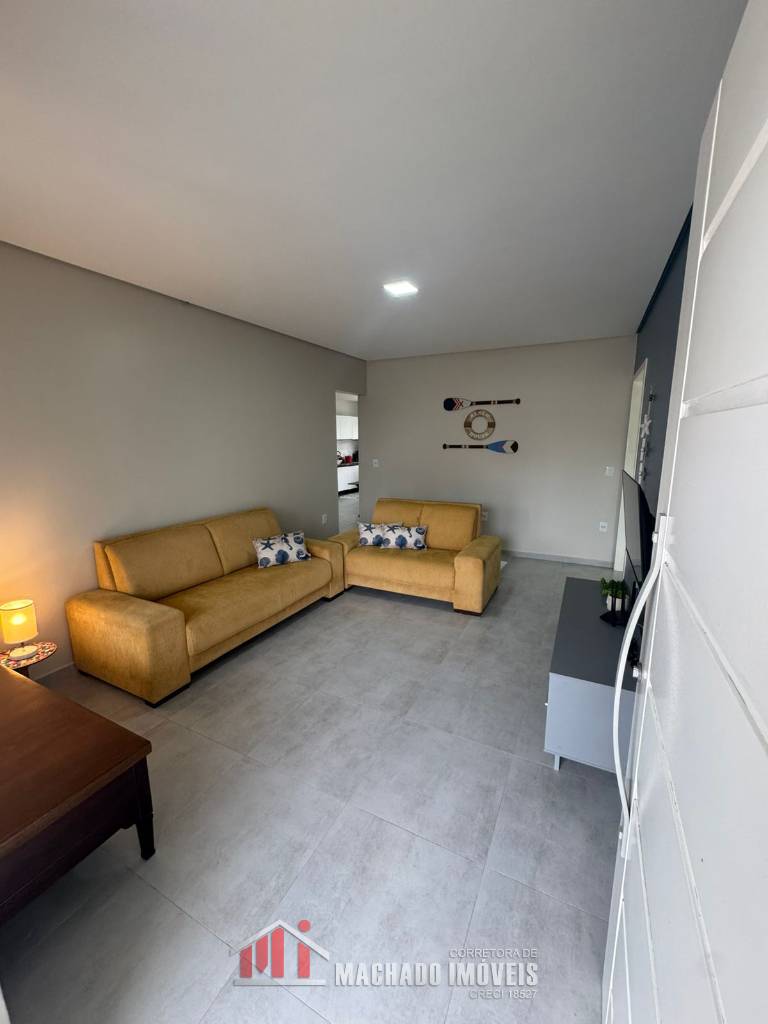 Casa 03 dormitórios, sendo 01 suíte, sala de jantar e cozinha integradas, sala de estar, banheiro social, área de serviço, churrasqueira, mobiliada, garagem coberta, pátio nos fundos, em torno de 350m/mar Aceita financiamento bancário, estuda propostas.