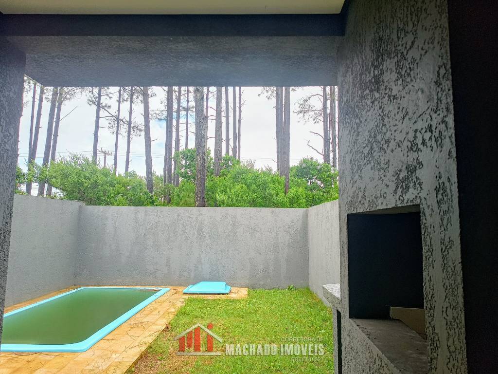 Casa geminada, 02 dormitórios, sendo 01 suite, sala e cozinha americana, banheiro social, área de serviço, churrasqueira, PISCINA, pátio fechado, em torno de 350m/mar