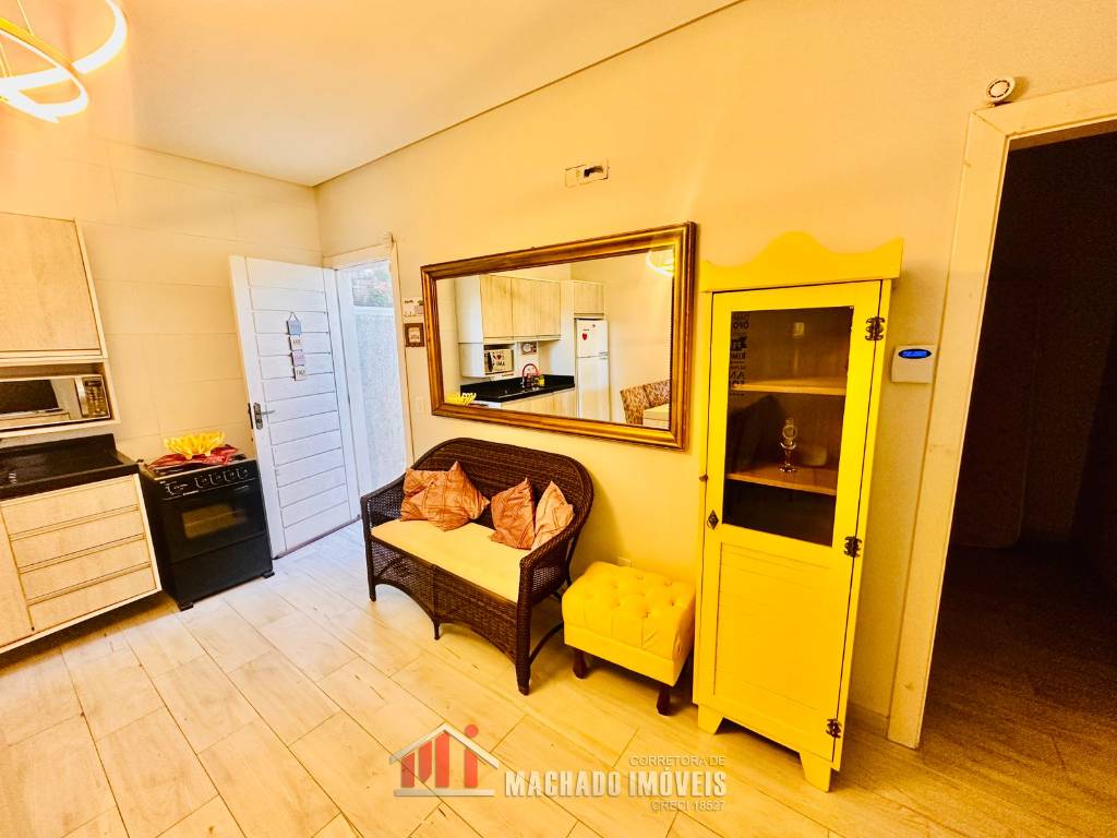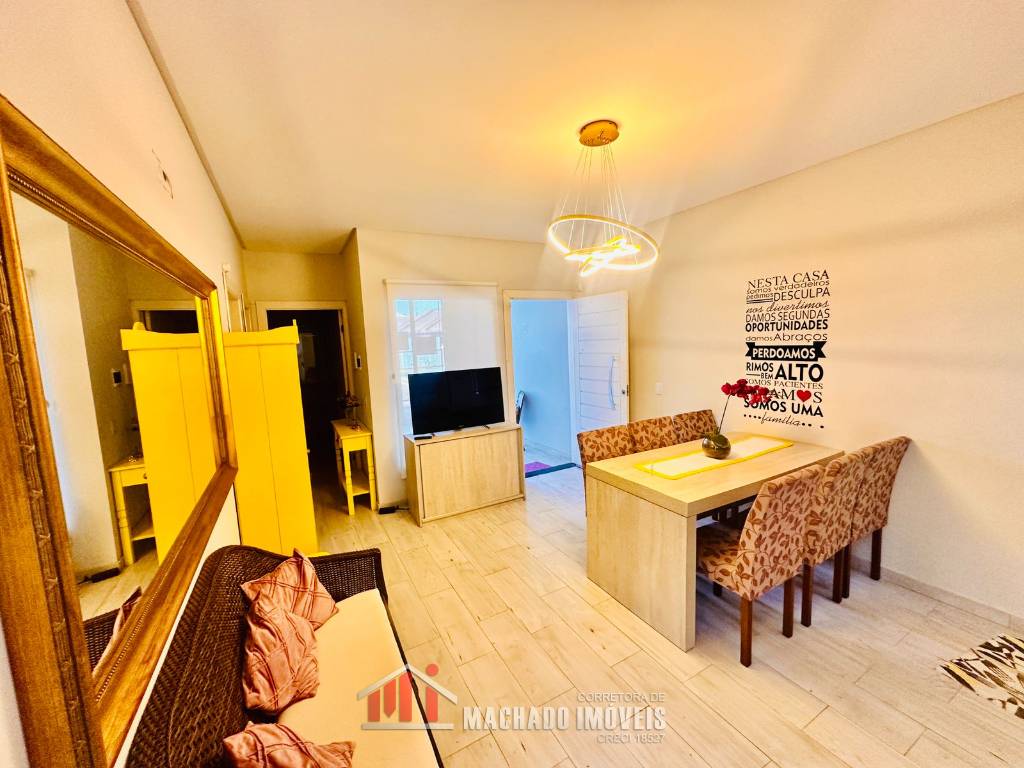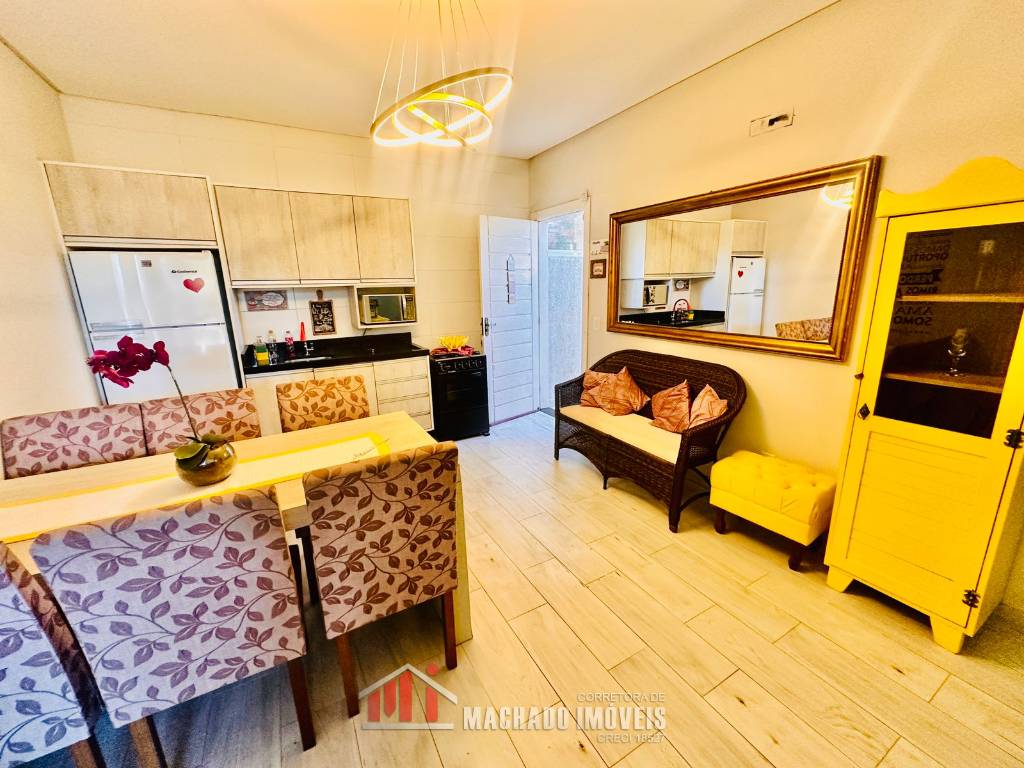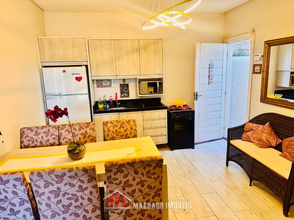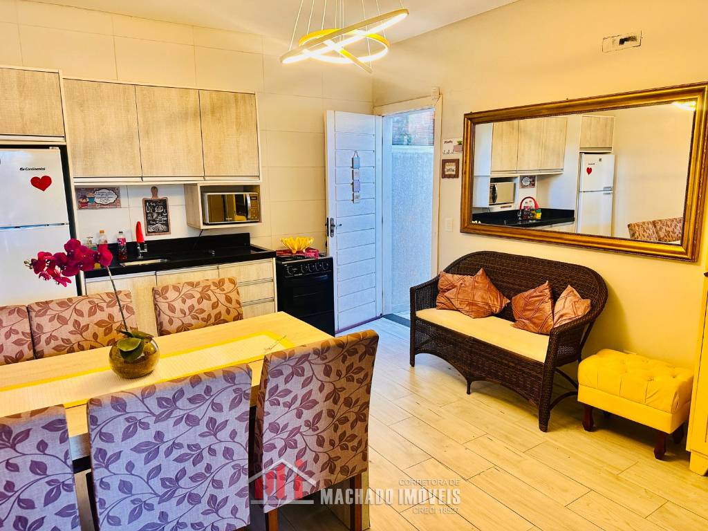 Casa geminada 02 dormitórios, sala e cozinha americana, banheiro social, churrasqueira, piso de porcelanato, gesso, fino acabamento, semi-mobiliada, estacionamenti para veiculo, em torno de 450m/mar