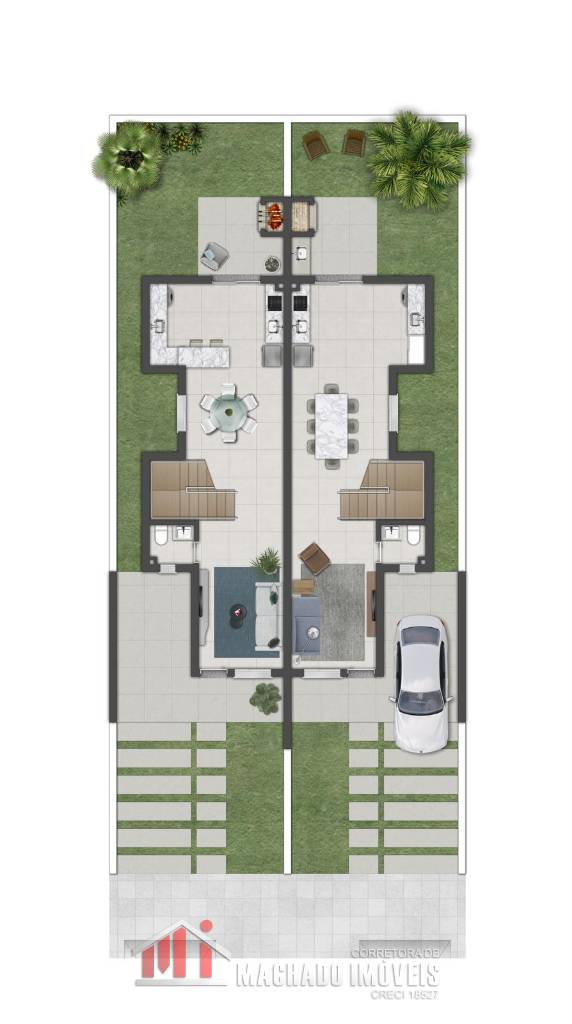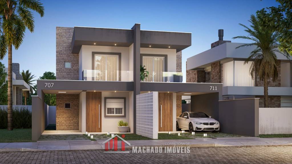 Sobrado Alto Padrão, 03 dormitórios, sendo 01 suíte com sacada sacada, banheiro social no segundo andar, sala de estar e jantar, cozinha, varanda gourmet com churrasqueira integrada com a cozinha, depósito amplo, lavabo, 01 vaga coberta, apenas 400m/mar Estuda propostas