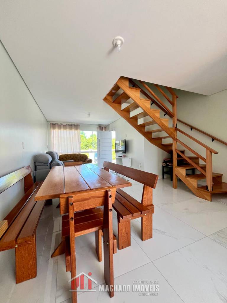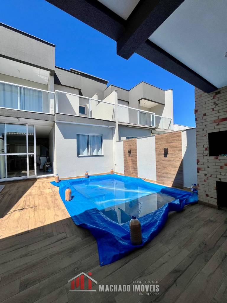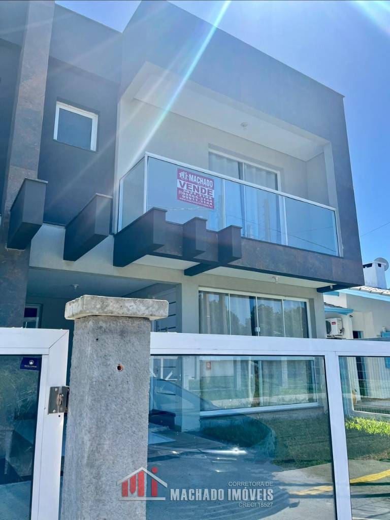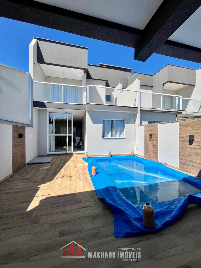Sobrado Alto Padrão, 03 dormitórios, sendo 01 térreo, 02 suítes no superior, banheiro social, sala, cozinha, espaço gurmet atrás com churrasqueira, banheiro, piscina, garagem, mobiliado pátio fechado, em torno de 450m/mar