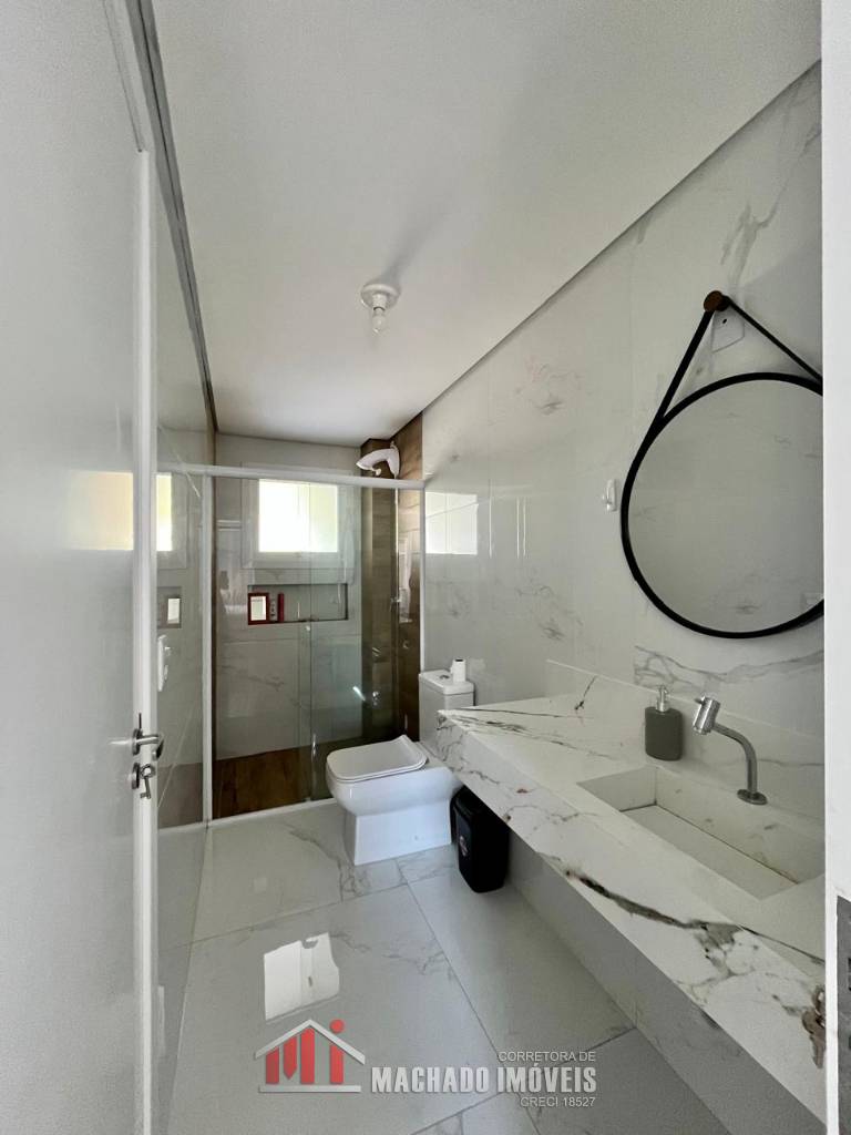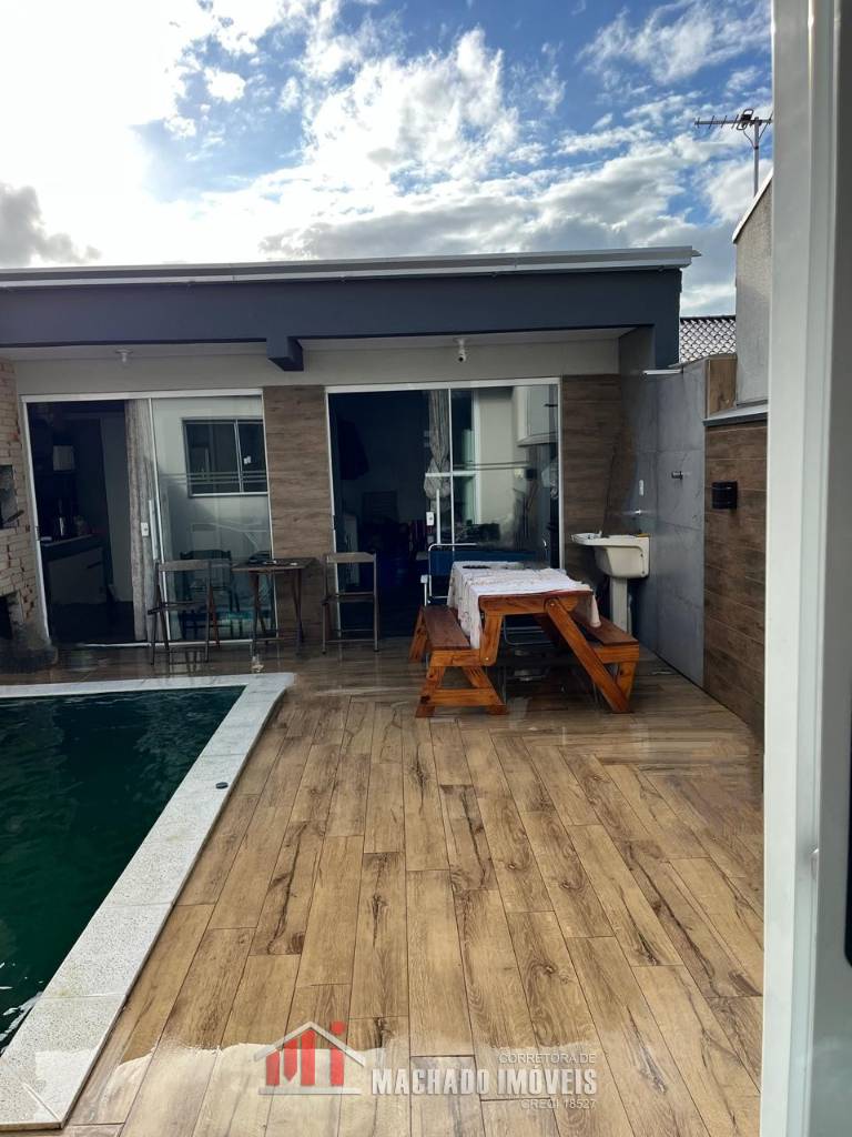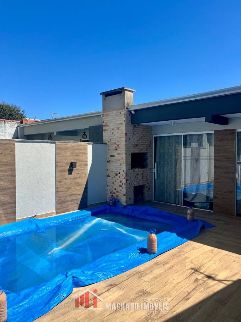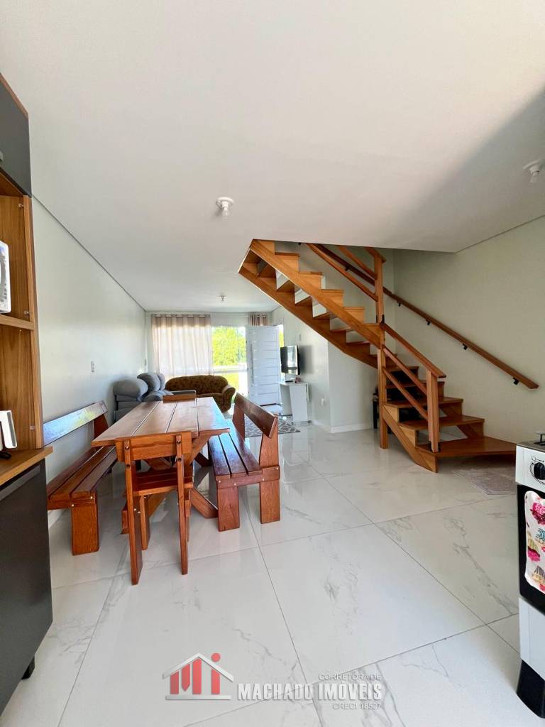 Sobrado Alto Padrão, 03 dormitórios, sendo 01 térreo, 02 suítes no superior, banheiro social, sala, cozinha, espaço gurmet atrás com churrasqueira, banheiro, piscina, garagem, mobiliado pátio fechado, em torno de 450m/mar