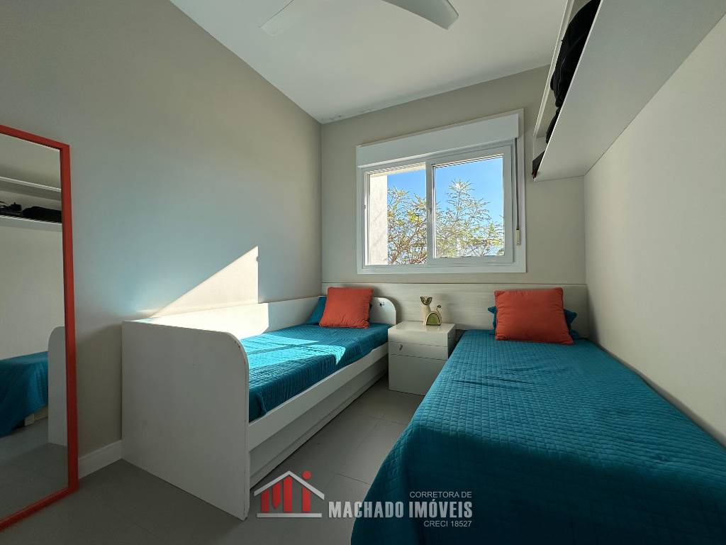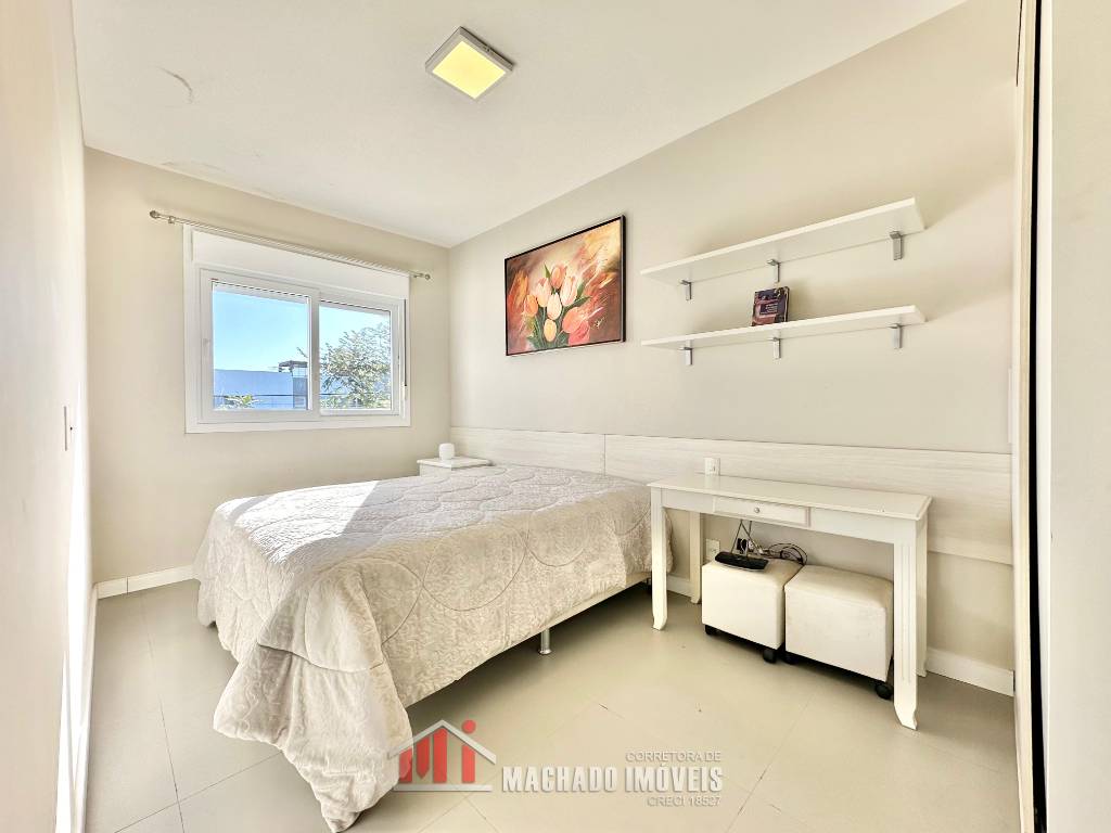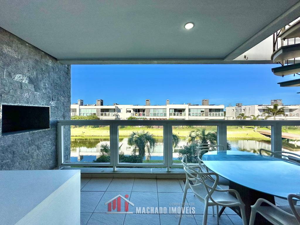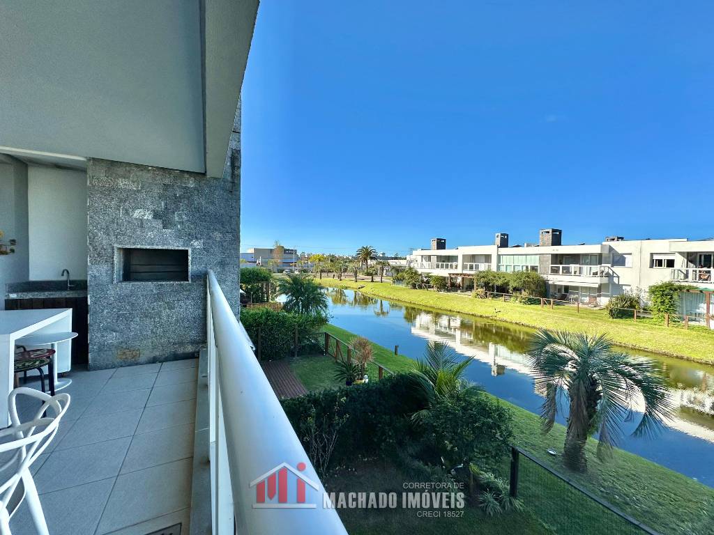 Casa mobiliada, frente leste 02 dormitórios (sendo 01 suíte), ambientes climatizados, Banheiro social, terraço c/espaço Gourmet sacada com churrasqueira, 02 vagas n°56 e 65, Junto à infra, beira lago.