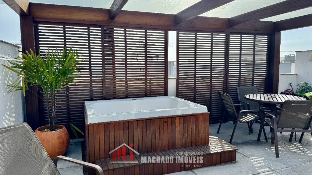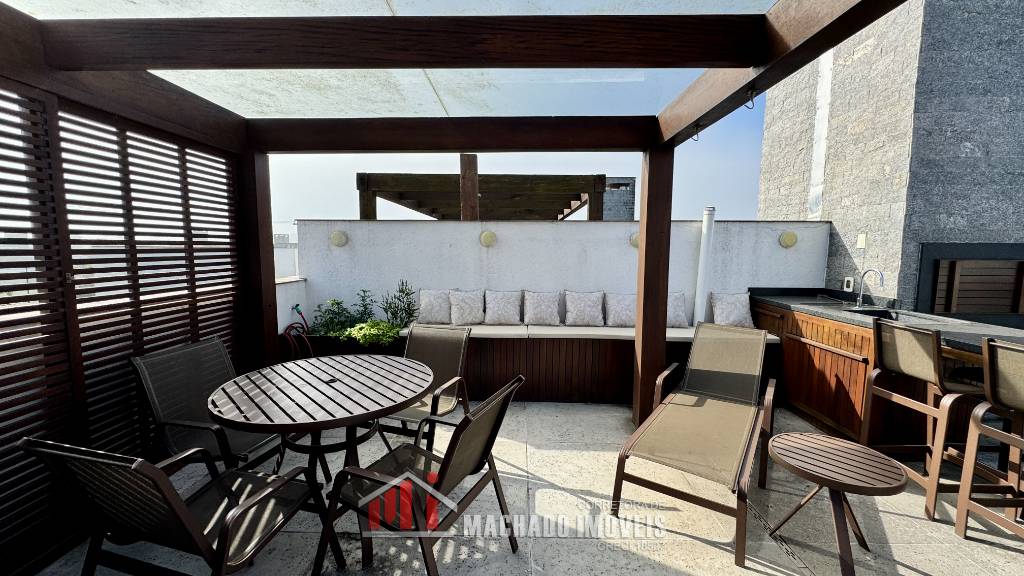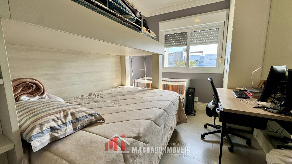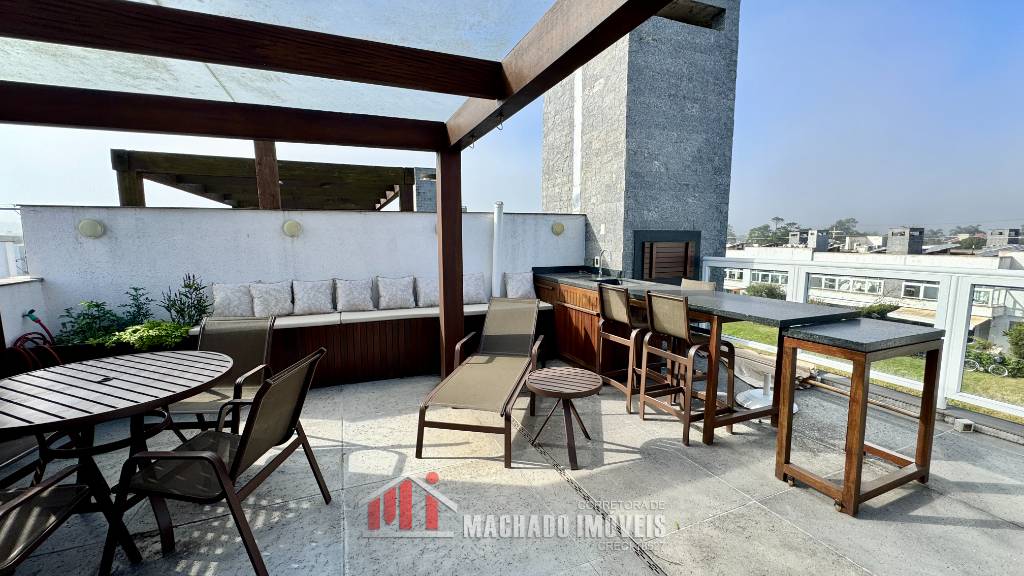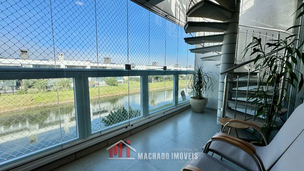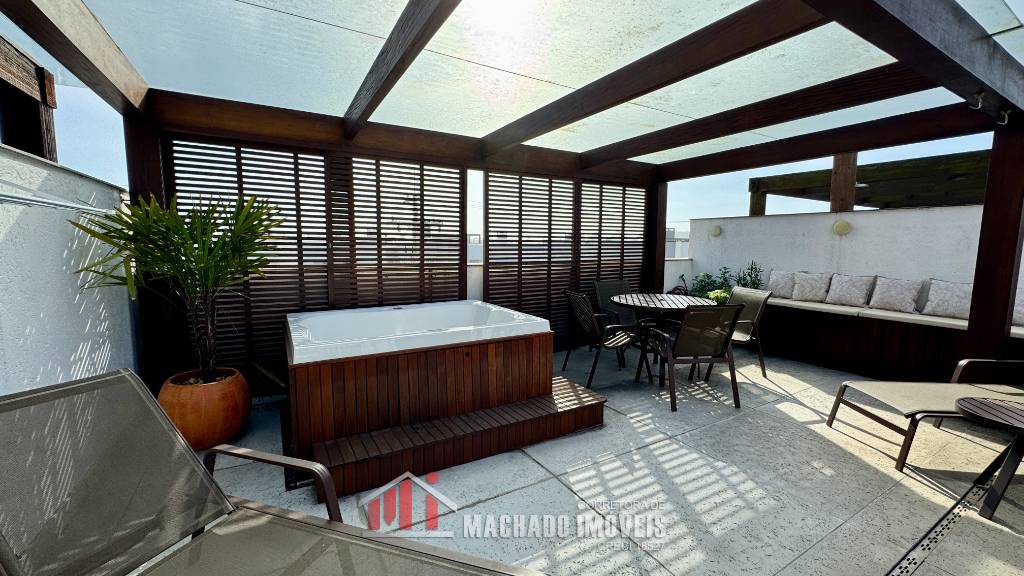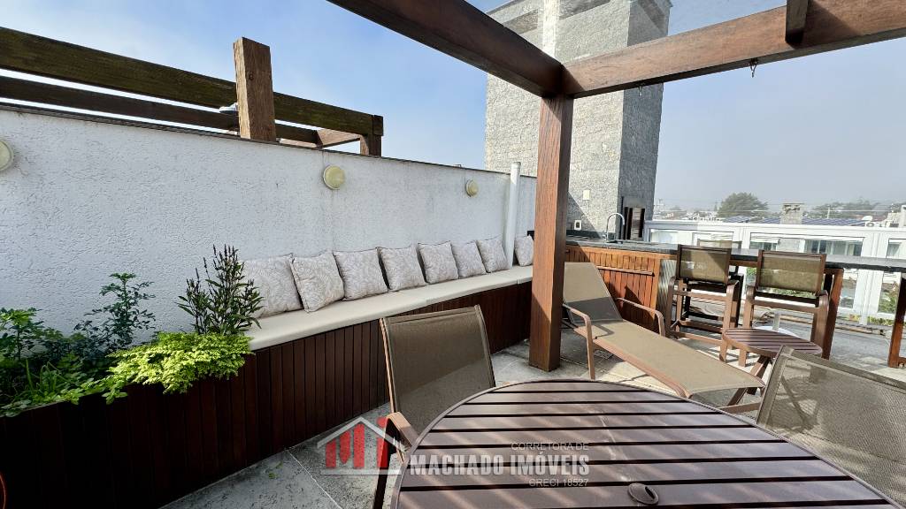 Casa mobiliada, 2 dormitórios (sendo 1 suíte), banheiro social, cozinha americana, living com lareira ecológica, lavanderia separada, sacada beira lago com churrasqueira, 2 vagas de garagem (1 coberta), no terraço, pergolado com cobertura de vidro, espaço, gourmet com churrasqueira e banheira.