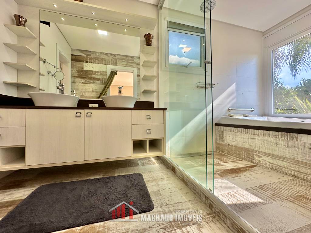 CAPÃO ILHAS RESORT Casa 3 dormitórios sendo 3 suítes, mobiliada e decorada de fino trato, closet nas 2 suítes de cima, 3 suítes independentes, lavabo, linda cozinha refinada em traços neo clássico, living em 3 ambientes, churrasqueira interna, piscina com lindo por do sol e banheiro em anexo, 220m² de área total, 2 vagas de garagem, posição solar norte.