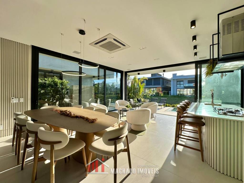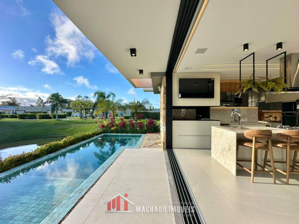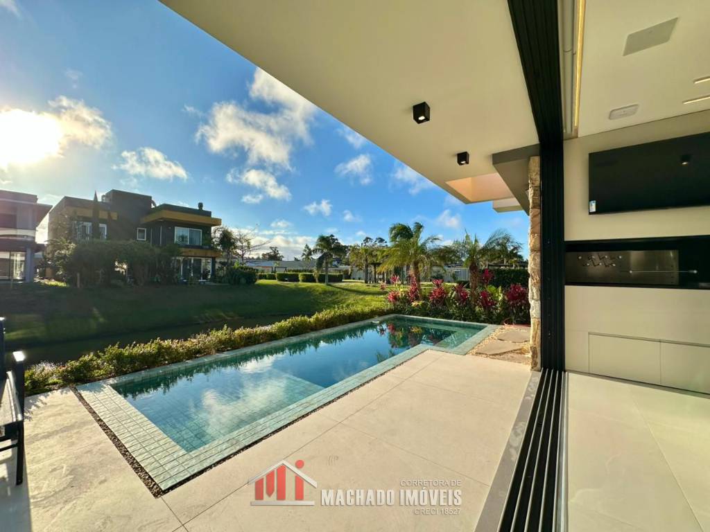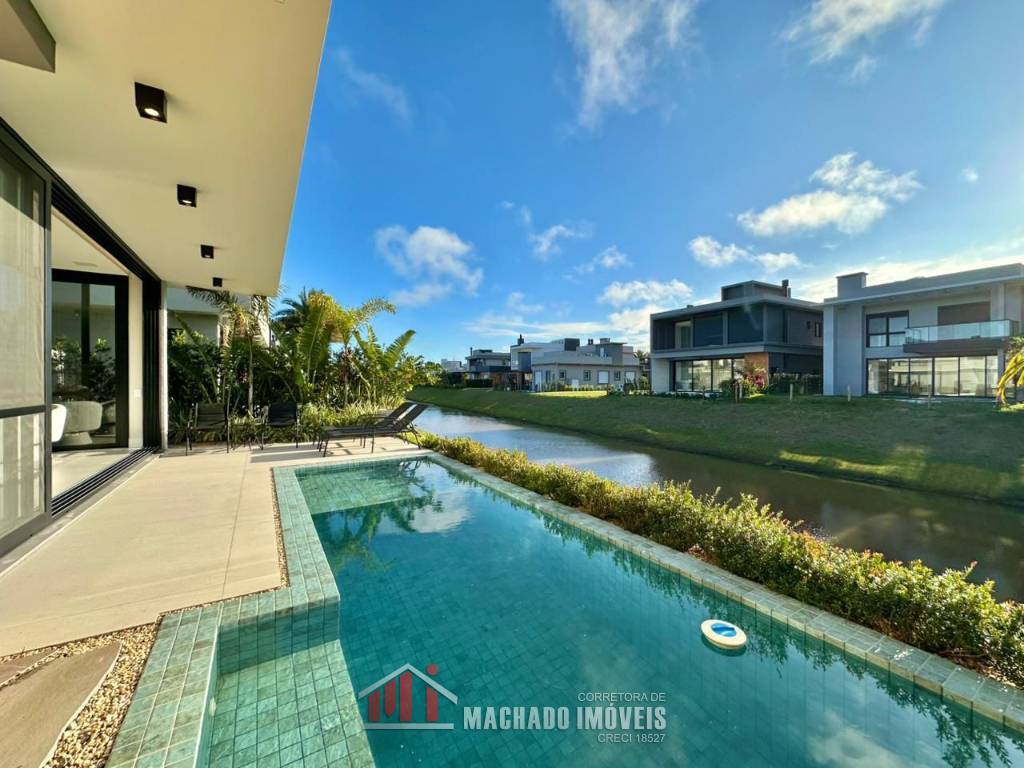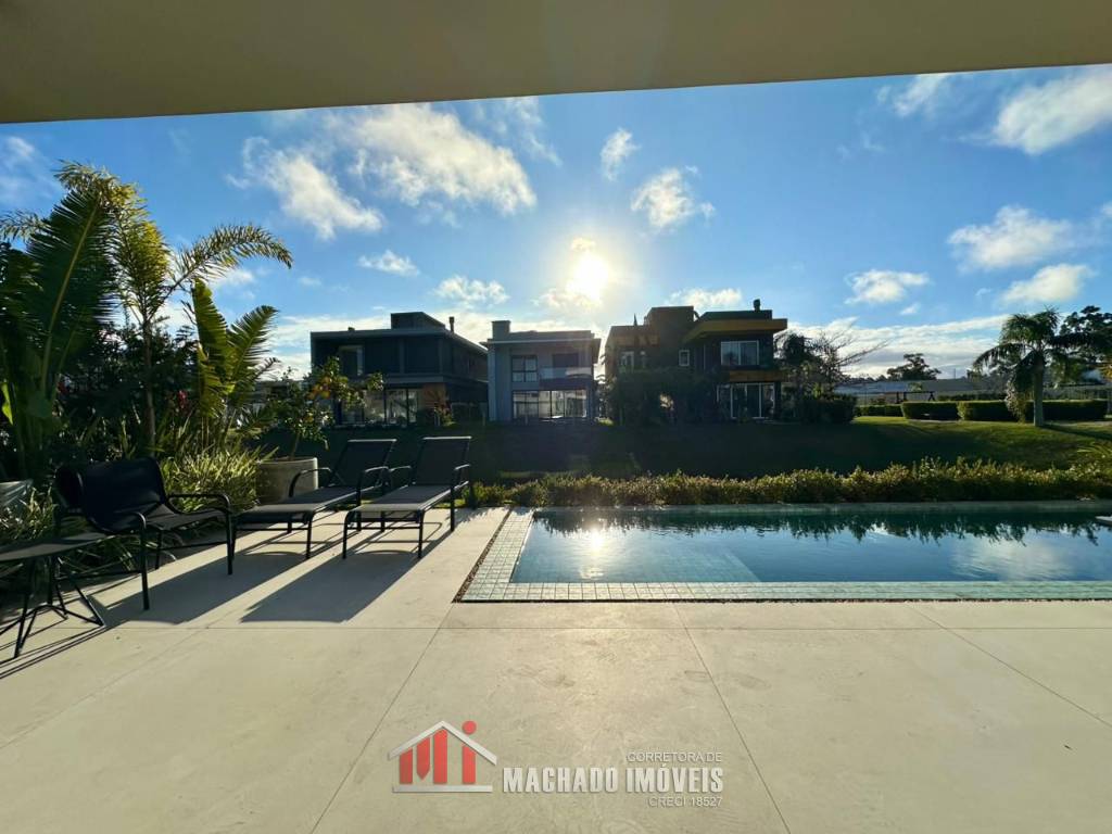 CAPÃO ILHAS Sobrado 05 Suítes - sendo uma térrea, amplo Living c/ pé direito duplo, sala de estar integrada com sala de jantar, lavabo lareira, cozinha americana, churrasqueira equipada, lavanderia completa, mobiliada, decorada e toda climatizada piscina de concreto, adega, 313 m², abrigo p/ 2 carros.