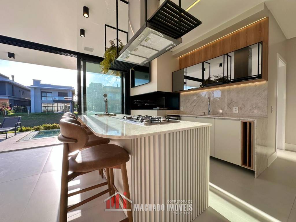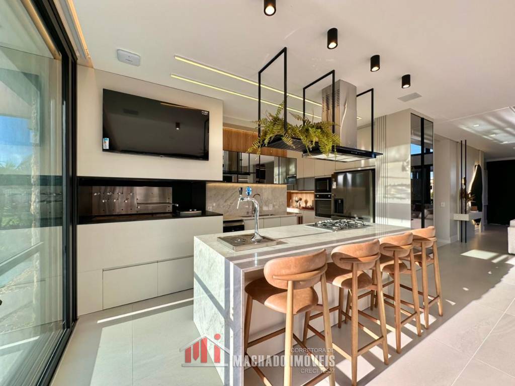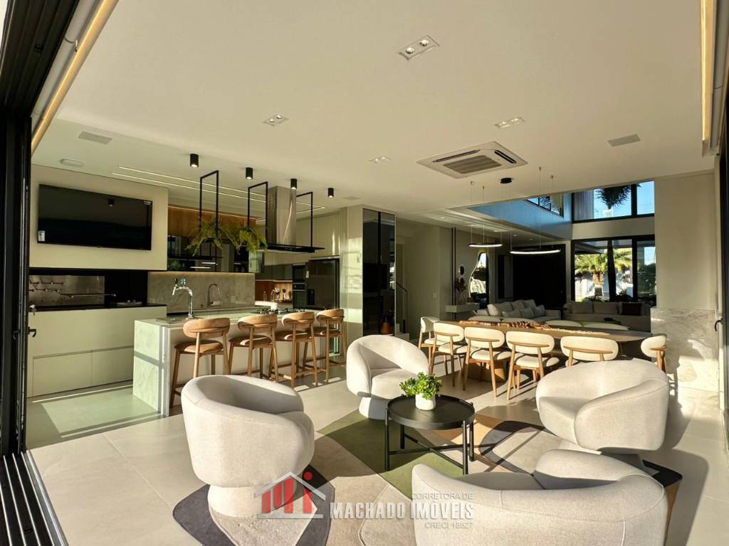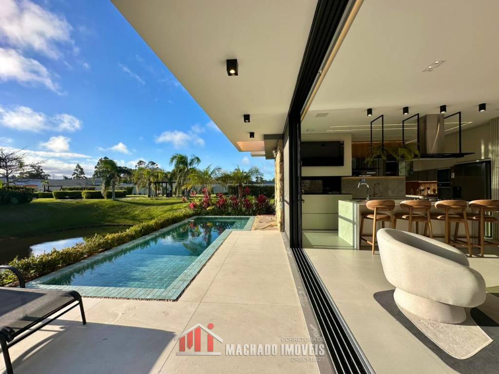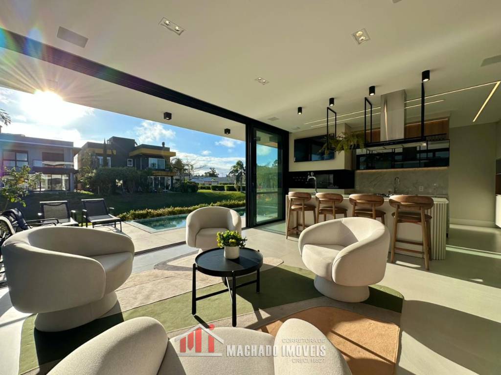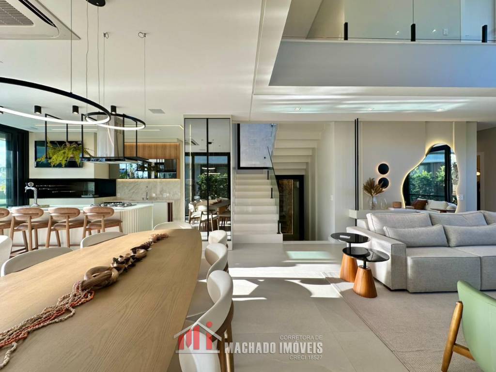 CAPÃO ILHAS Sobrado 05 Suítes - sendo uma térrea, amplo Living c/ pé direito duplo, sala de estar integrada com sala de jantar, lavabo lareira, cozinha americana, churrasqueira equipada, lavanderia completa, mobiliada, decorada e toda climatizada piscina de concreto, adega, 313 m², abrigo p/ 2 carros.