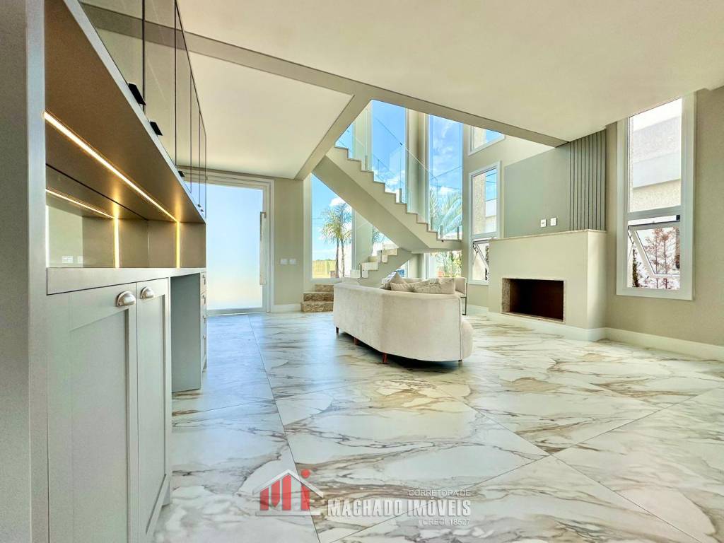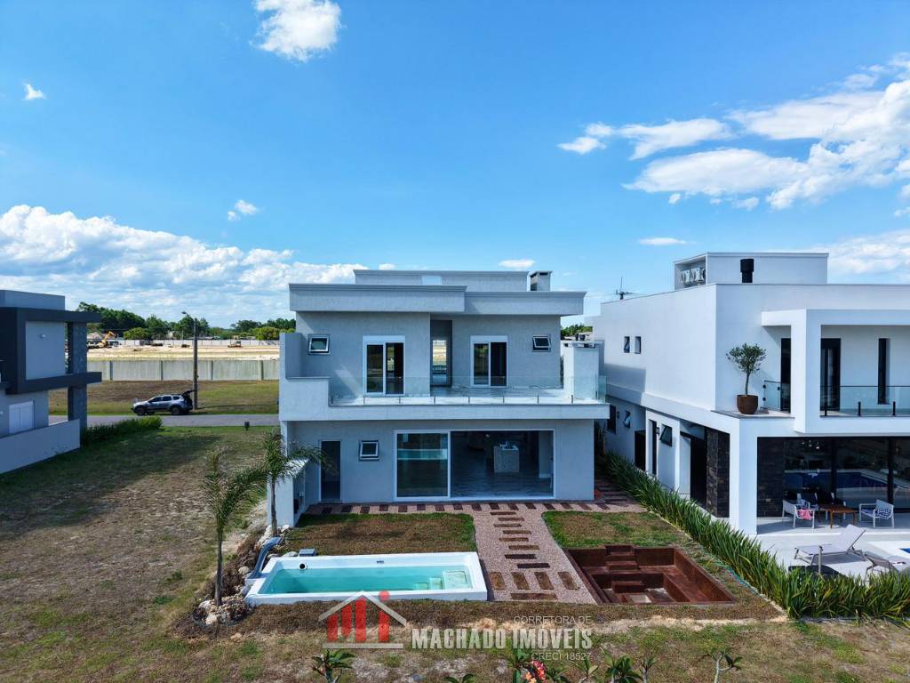 Sobrado com 330 M², Beira lago, 04 Suítes (sendo uma no térreo e uma master com closet), lavabo, muita Iluminação natural, piscina, paisagismo, lareira, churrasqueira, móveis fixos, living integrado, aberturas em PVC, fogo de chão (Fire Pit), terraço amplo, vaga para 2 carros. Condominio: - Academia, piscina, quadras esportivas, salões de festas, espaço kids.
