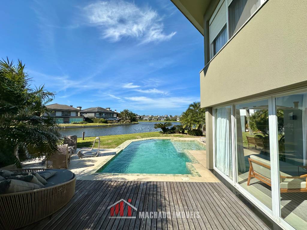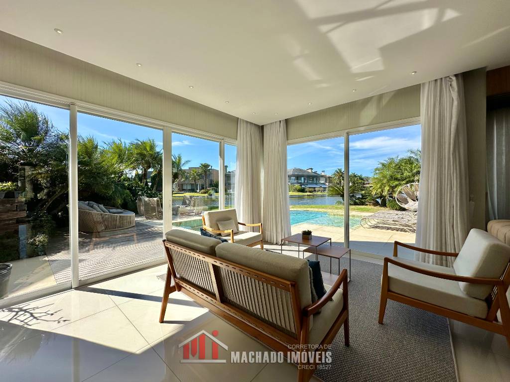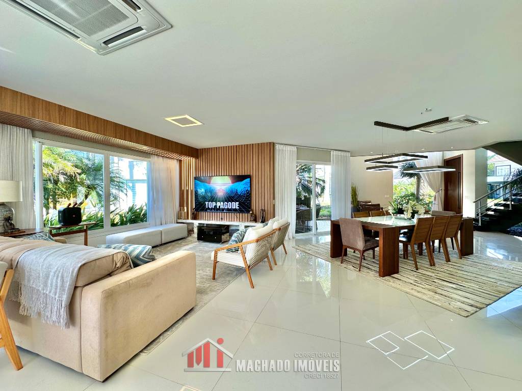 DUBAI RESORT Casa 04 suítes sendo 2 americana e 1 suíte master com closet e hidromassagem, 195m², decorada, persianas automatizadas esquadrias em pvc, piscina aquecida, área de serviço separada, garagem pra dois carros, área verde lateral.