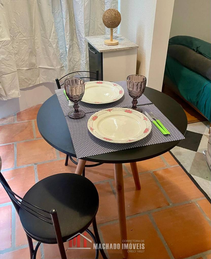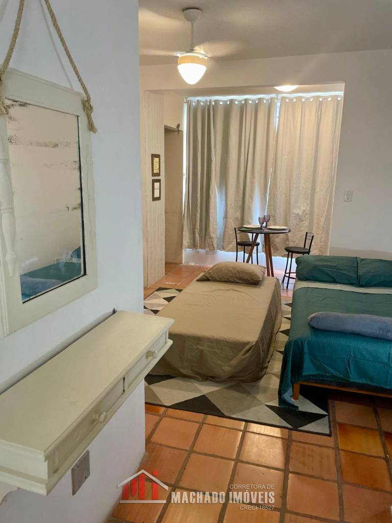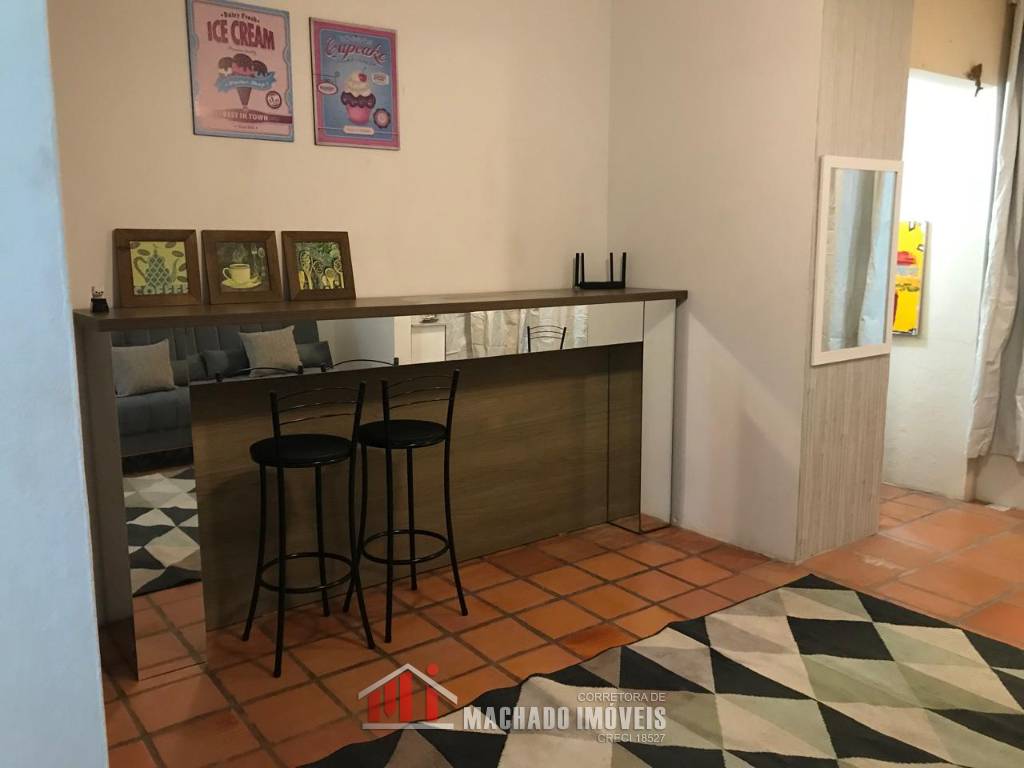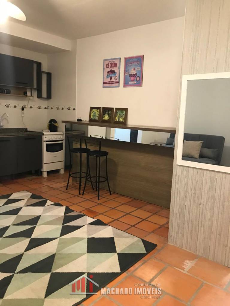 JK térreo com meio dormitório, sala e cozinha americana, banheiro social, área de serviço com churrasqueira, sacada fechada, semi mobiliado, box coberto, condominio com piscina, em torno de 250m/mar Aceita financiamento Bancário, estuda entrada 50% e parcelas