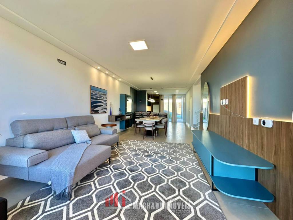 Sobrado com 199 M², ?04 Suítes, banheiro social, vista para o mar, mobiliado & decorado, living 03 ambientes, cozinha américana, água quente, gás central, esquadria em pvc, piscina, pátio amplo murado e cercado, sol da manhã, espaço gourmet com churrasqueira, Jardim de inverno, garagem coberta.