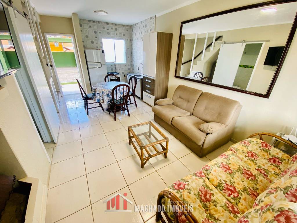 Sobrado 02 dormitórios, banheiro social, lavabo, cozinha, sala de estar, área de serviço, churrasqueira, box coberto para veículo. Condomínio localizado em torno de 550m/mar. Aceita financiamento bancário