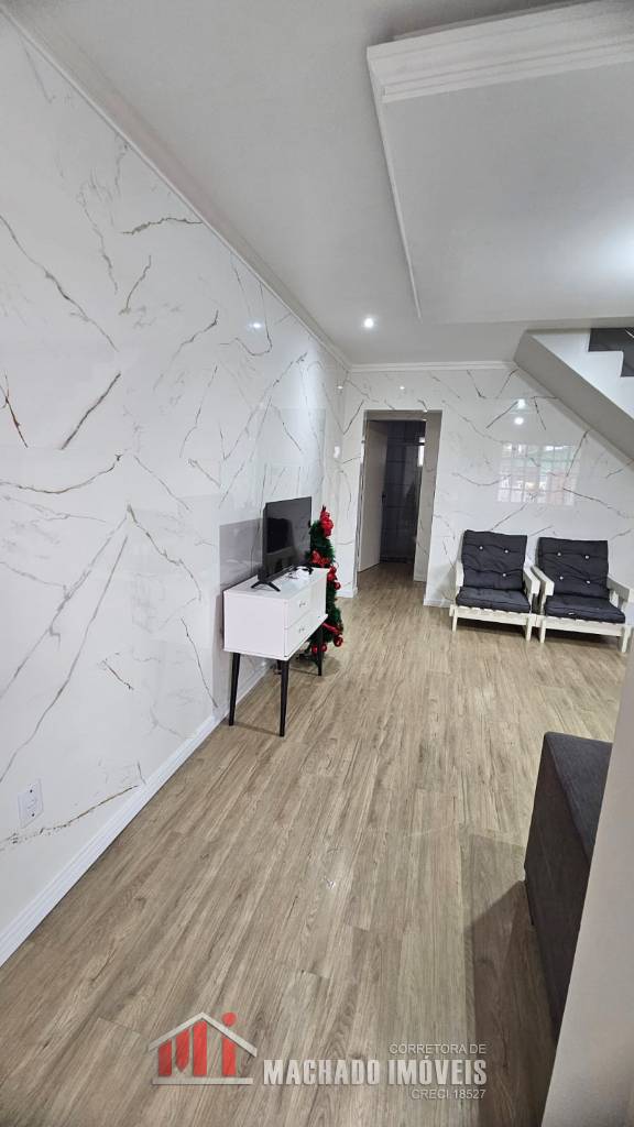 Sobrado 02 dormitórios com ar condicionado sendo 01 suíte, 02 banheiros sociais, sala de estar, TV Sky, Wifi, cozinha com microondas e forno elétrico, sacada, área de serviço com máquina de lavar, pátio fechado, salão de festas, garagem. Em torno de 600m/mar. Aceita financiamento bancário.