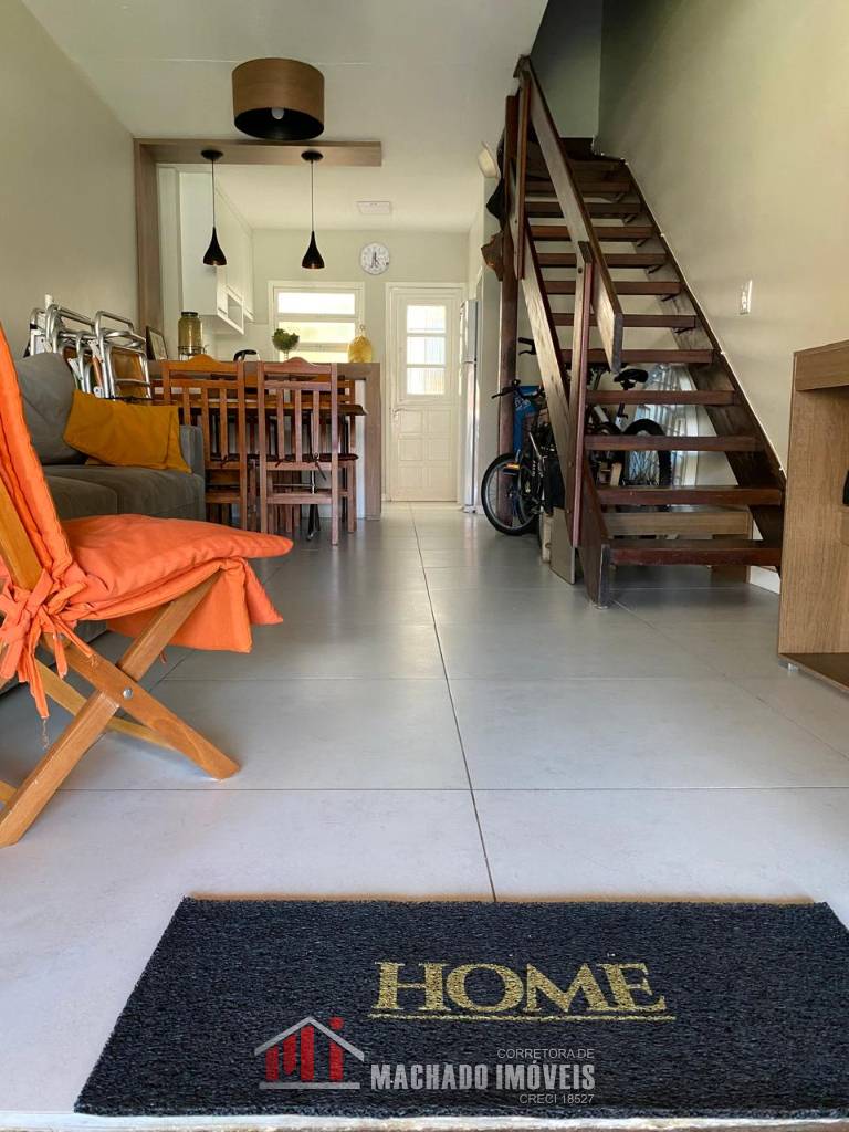 Sobrado geminado 2 dorm, 3 vagas no bairro CAPÃO NOVO em Capao da Canoa! Sobrado composto por 02 dormitórios, 02 banheiros sociais, churrasqueira, área de serviço, cozinha americana conjugada com sala de estar, varanda, garagem coberta para 01 carro e descoberta para 02 carros. Excelente localização, apenas 300 metros da avenida beira-mar e uma quadra do Super da Praia, farmácia e comércio local! Banheiro e cozinha sob medida reformados, piso em porcelanato! Baixíssimo custo de manutenção e condomínio bem organizado e administrado com gramado em frente ao sobrado! Vale demais conferir! É comprar e curtir!