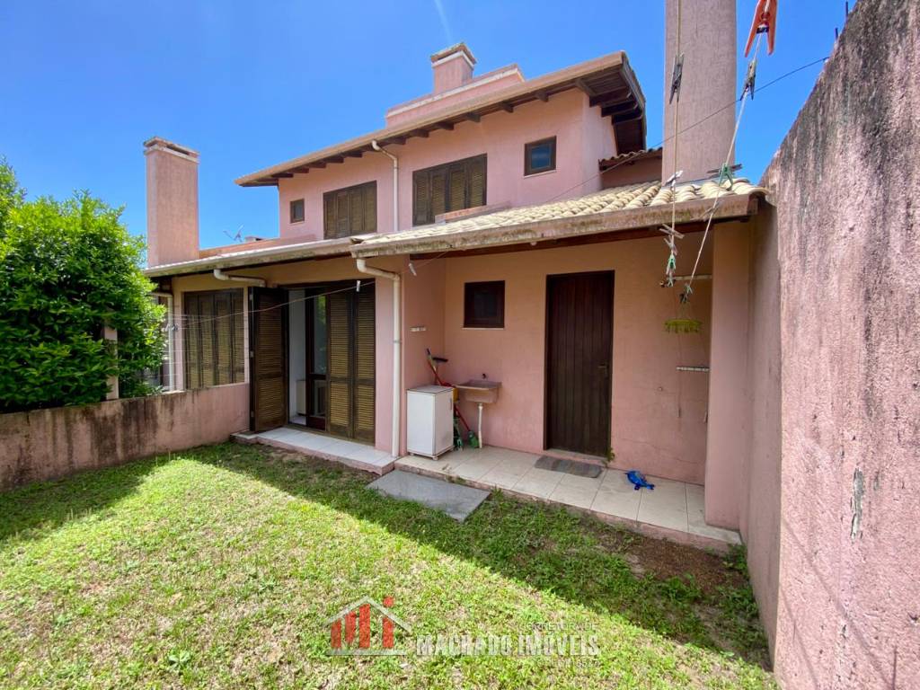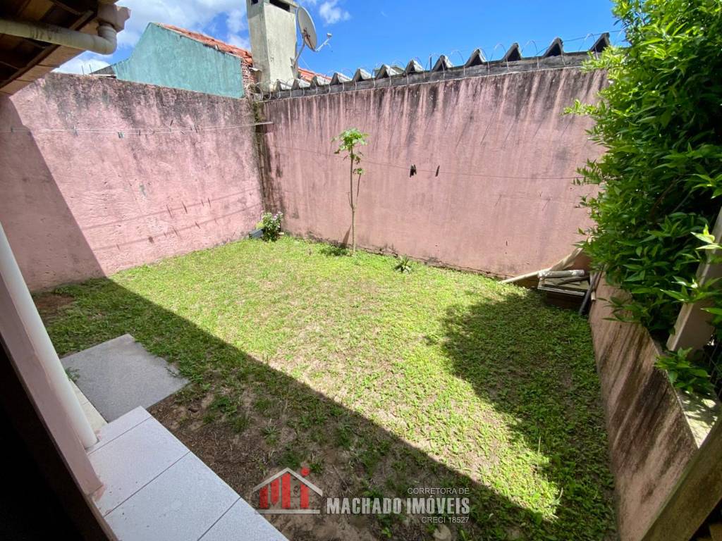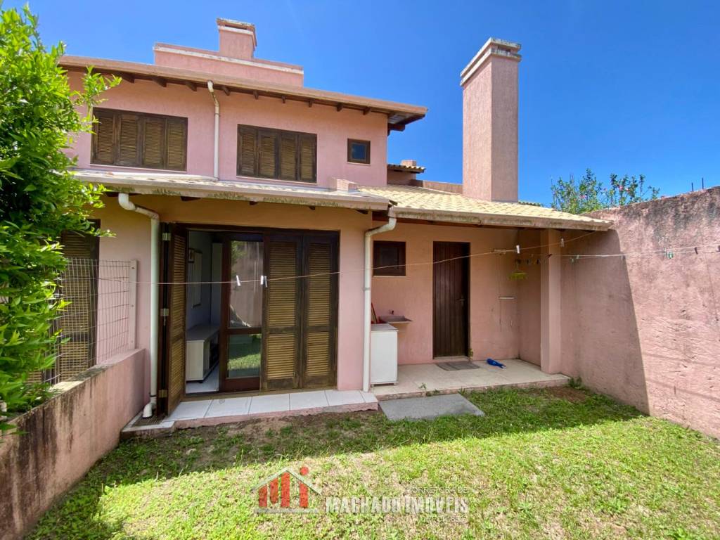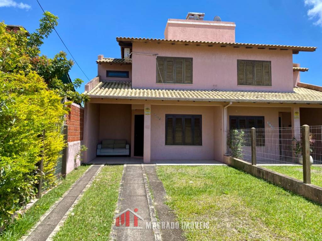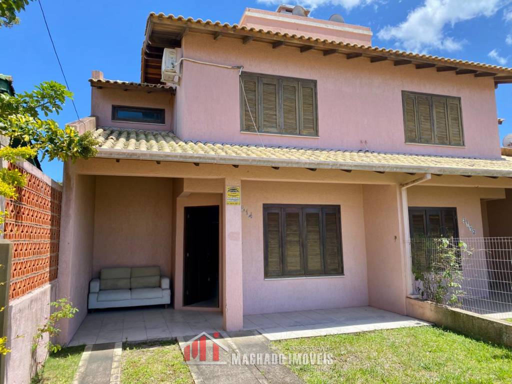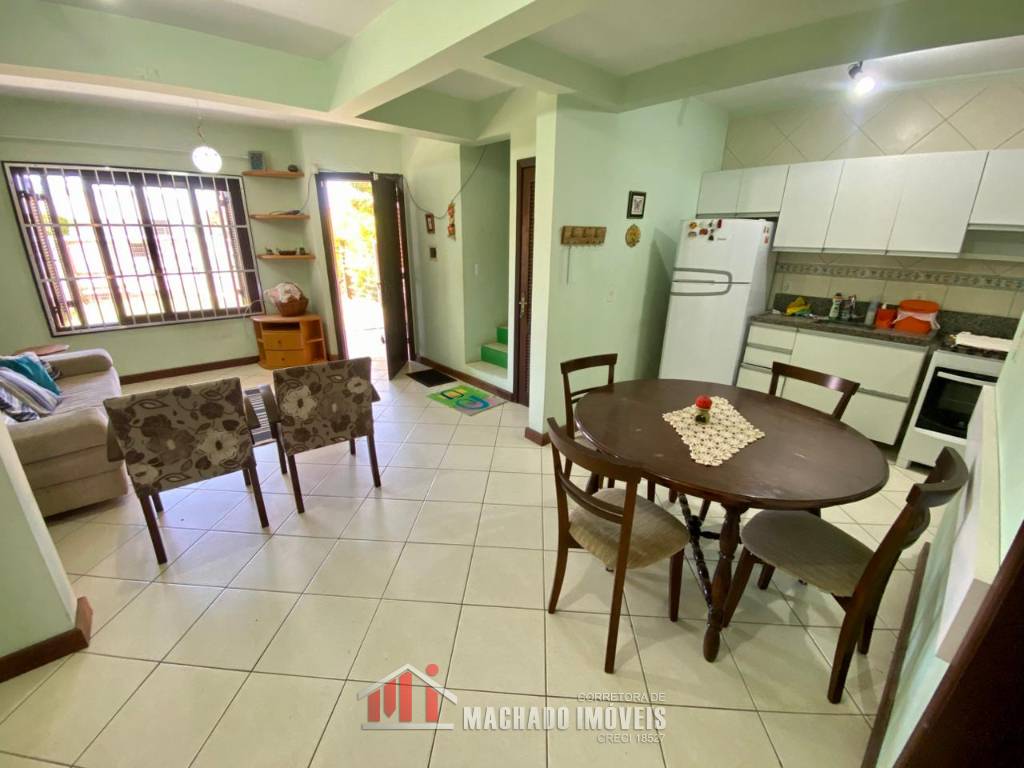 Sobrado, 03 dormitórios, sendo 01 dormitório térreo, 02 banheiros sociais, sala, cozinha com churrasqueira, ficam móveis fixos, pátio privativo na frente e nos fundos, estacionamento para 02 veículos, terreno com 150m2, sem taxa de condominio, em torno de 600m/mar Aceita financiamento bancário