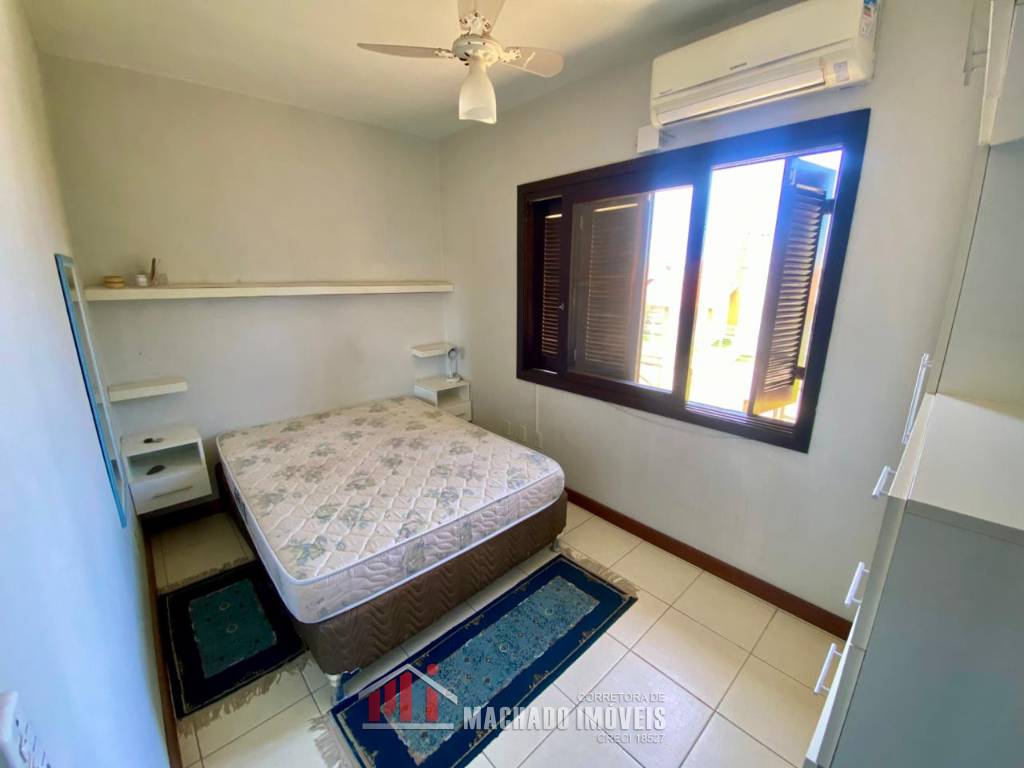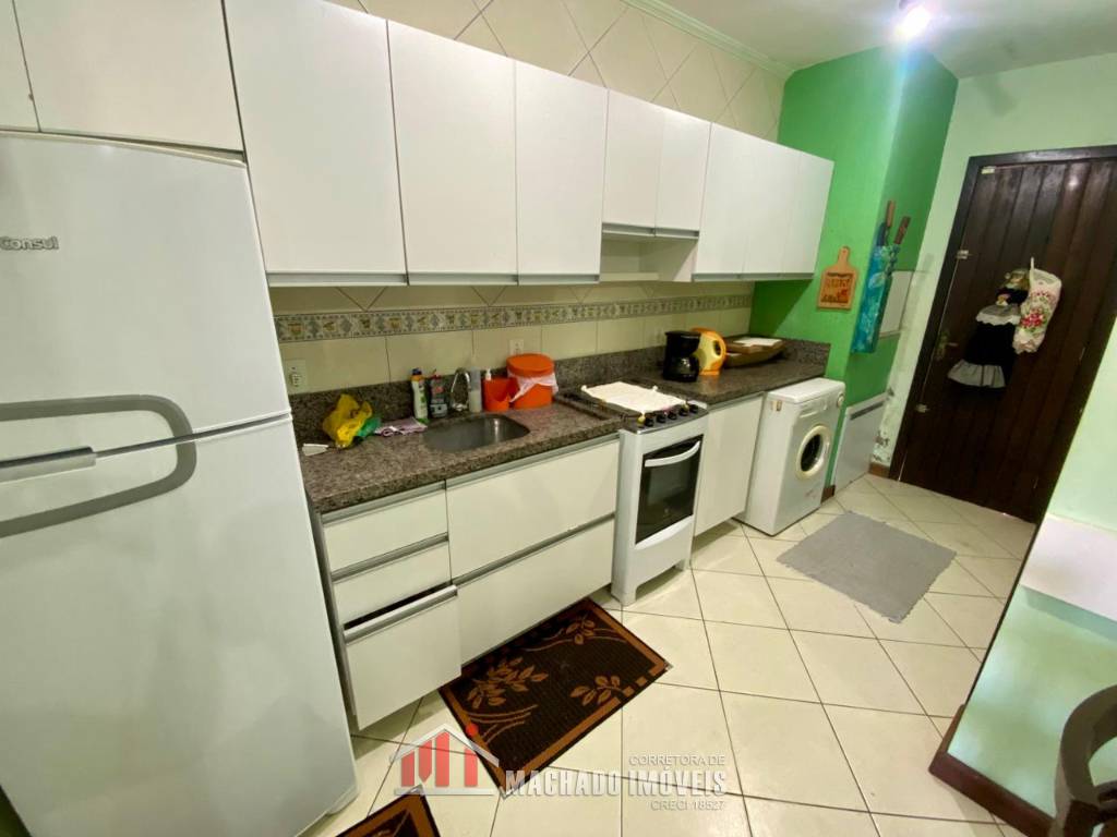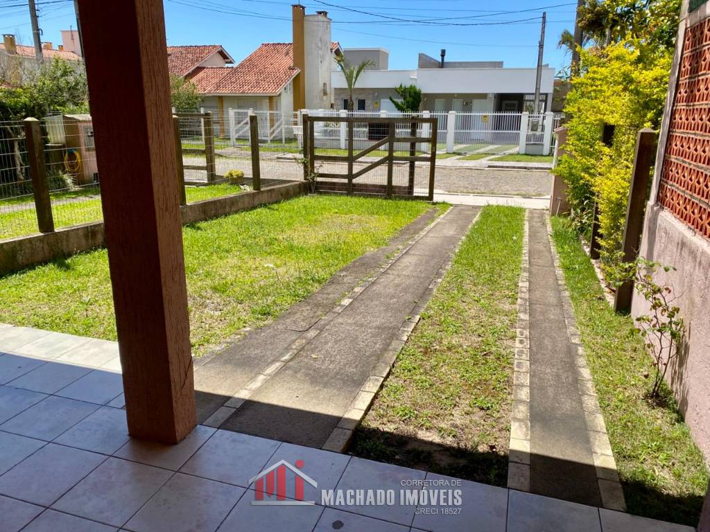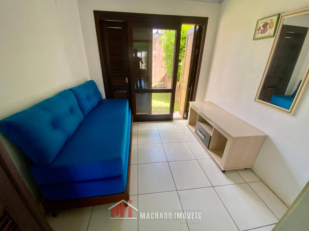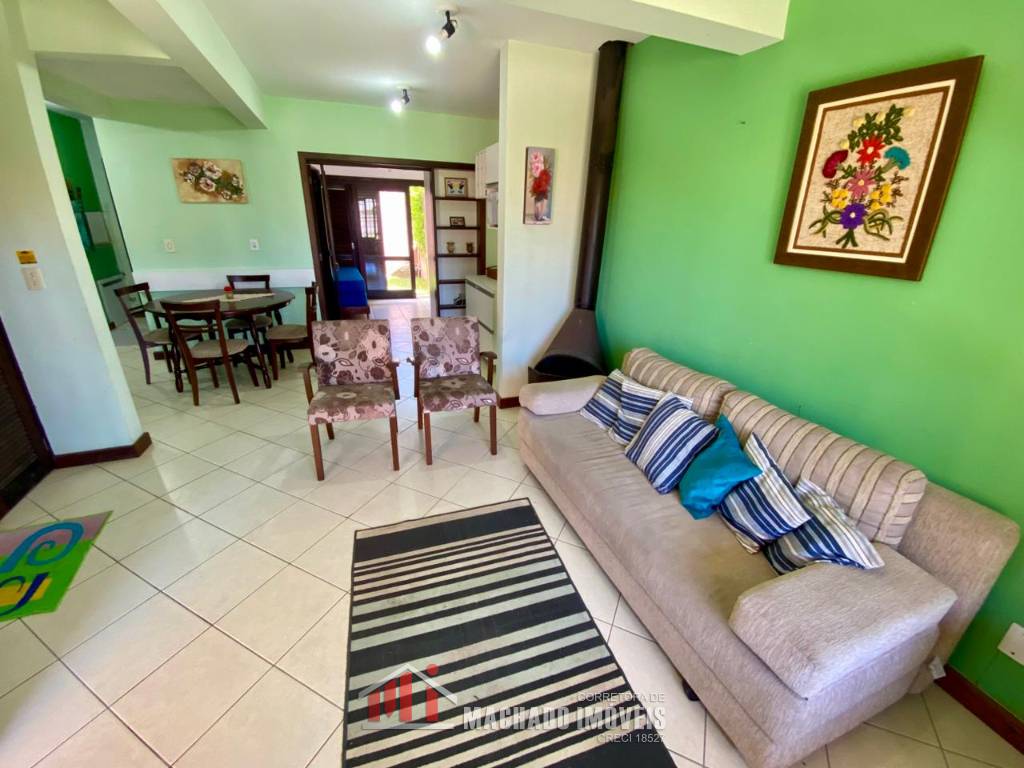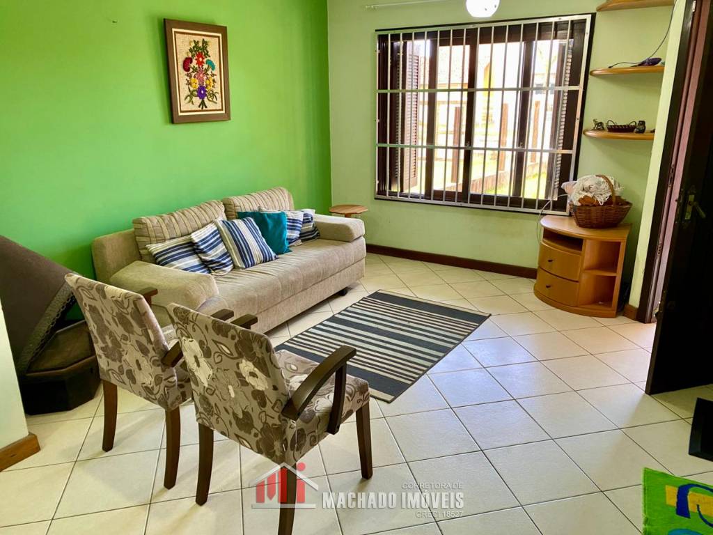 Sobrado, 03 dormitórios, sendo 01 dormitório térreo, 02 banheiros sociais, sala, cozinha com churrasqueira, ficam móveis fixos, pátio privativo na frente e nos fundos, estacionamento para 02 veículos, terreno com 150m2, sem taxa de condominio, em torno de 600m/mar Aceita financiamento bancário