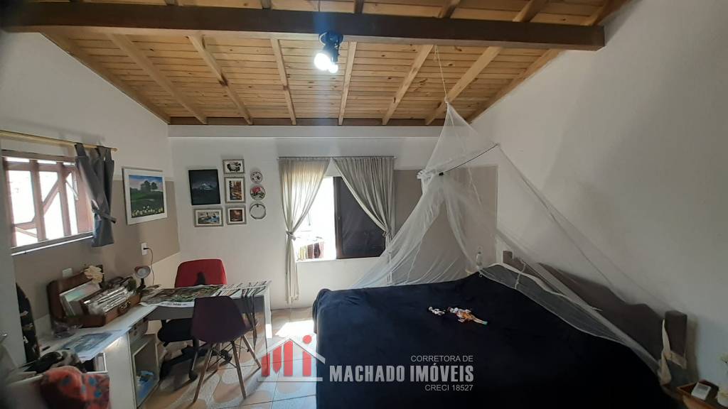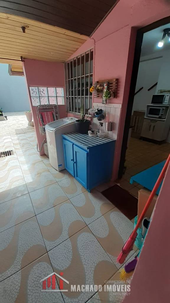 Sobrado 3 dormitórios, 2 banheiro, sala, cozinha estilo americana, lareira, lavanderia, pátio fundos, garagem e mais 1 peça externa, em torno de m/mar