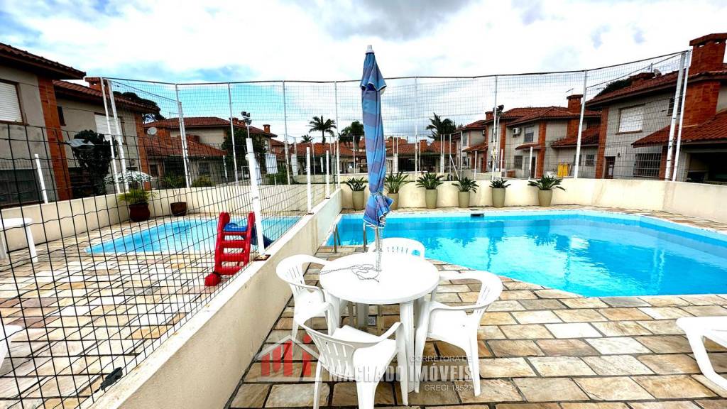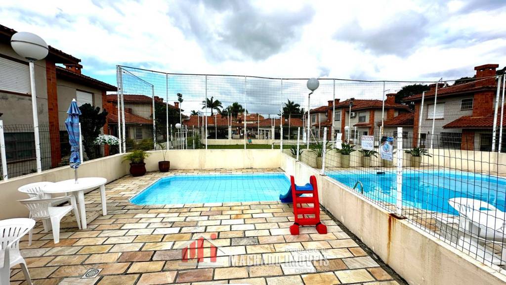 Sobrado 02 dormitórios, 2 banheiros, sala e cozinha americana, área de serviço c/ churrasqueira, mobiliado, garagem, condomínio com infra completra e piscinas