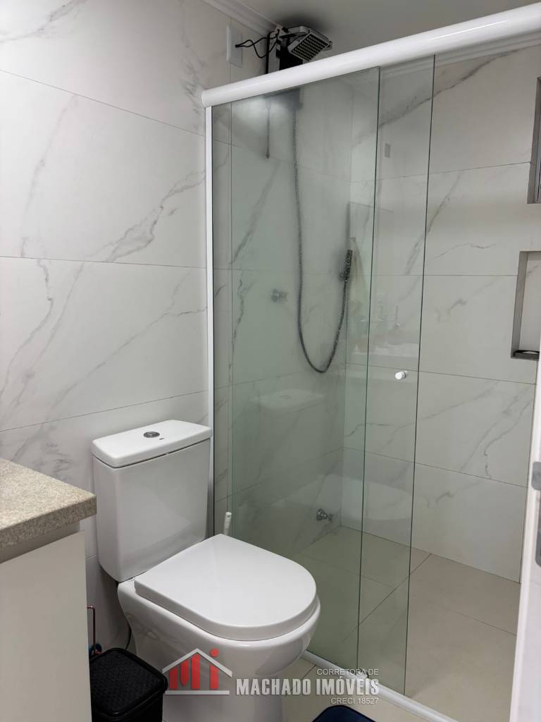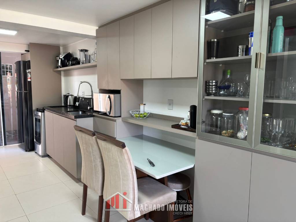Sobrado totalmente reformado e com móveis sob medida, 03 dormitórios no pavimento superior, todos com split, 02 banheiros sociais, sala e cozinha americana, área externa da sala com orientação solar "norte, box interno para veículo, condomínio com infra de piscinas Aceita financiamento bancário