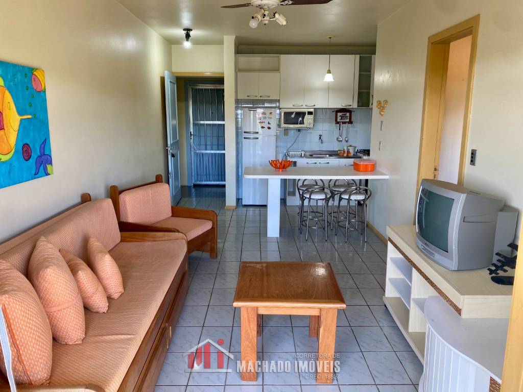 Apartamento 4o andar, 1 e 1/2 dormitório, com acomodação de 04 a 05 pessoas, área de serviço com churrasqueira, sacada fechada, ventilador de teto, micro, geladeira duplex, torradeira, liquidificador, box para veículo, condomínio com piscina, em torno de 800m/mar. OCUPADO NO REVEILLON DE 29/12 ATÉ 04/01/26