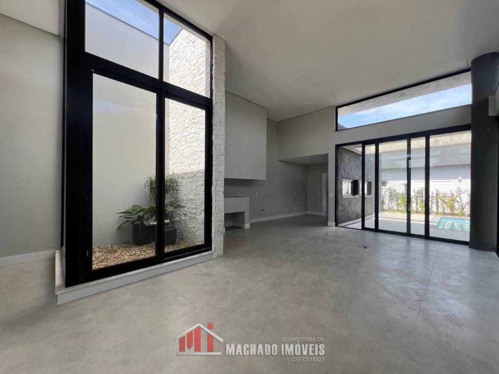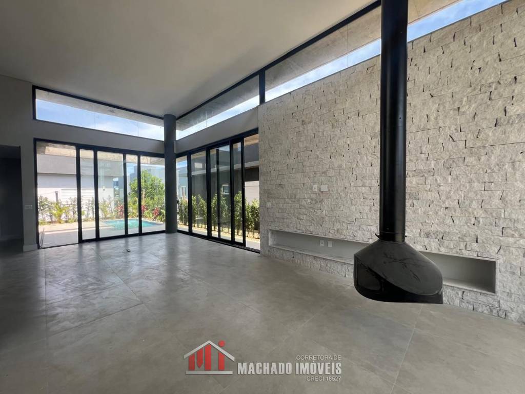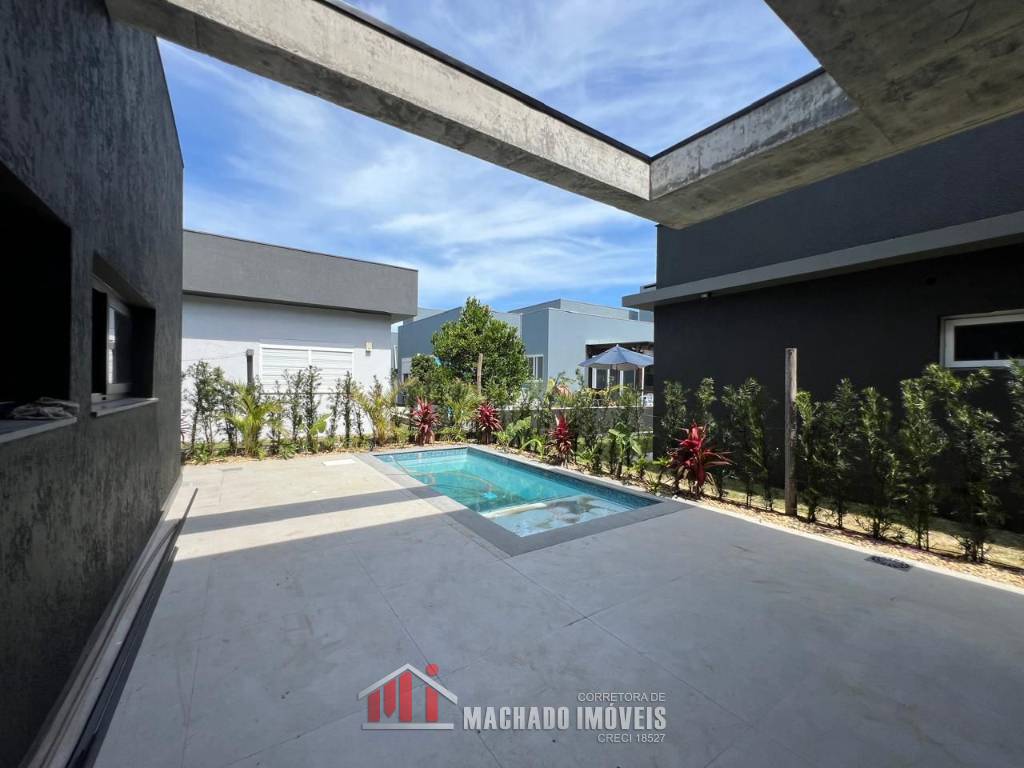 DUBAI RESORT Casa 04 suítes independentes, 02 lavabos, living integrado em 03 ambientes, cozinha, área de serviço, 194, 88 m² construídos jardim de inverno, aberturas em PVC. Janelas automatizadas, lareira suspensa 360 °C, lajes em concreto aparente polido detalhes em pedra miracema irregular, piscina, jardinagem com irrigação automática, oliveira com 50 anos de idade.