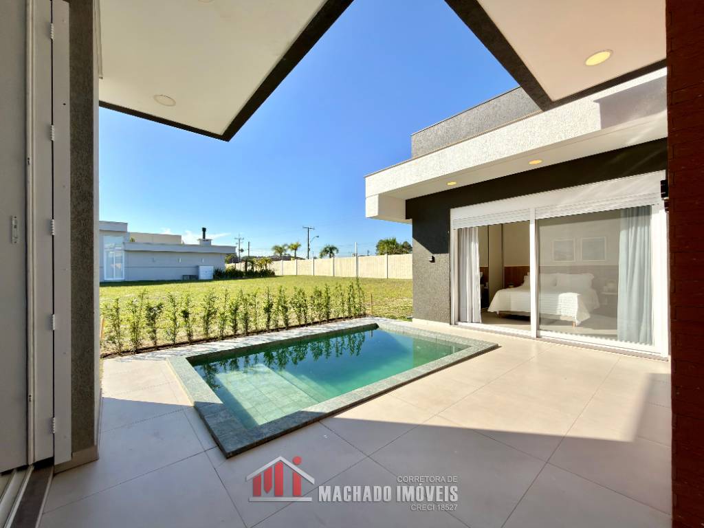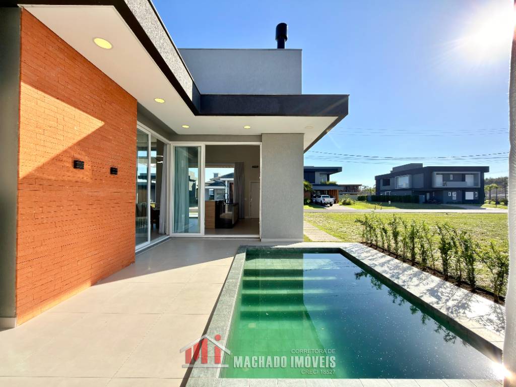 BEIRA MAR - CONDOMÍNIO COSTA SERENA, Casa Térrea, alto padrão, projeto moderno de estilo contemporâneo, 04 suítes, sala de estar e jantar, cozinha americana com espaço gourmet e churrasqueira com a possibilidade de integração com a área de lazer externa através de esquadrias de abertura total, toda a área de living com pé direito duplo, piscina, garagem coberta para 02 carros e vagas descobertas para mais 02 carros, área de serviço e lavabo, será entregue mobiliada e decorada. Estuda imóvel, veículo. Aceita financiamento bancário