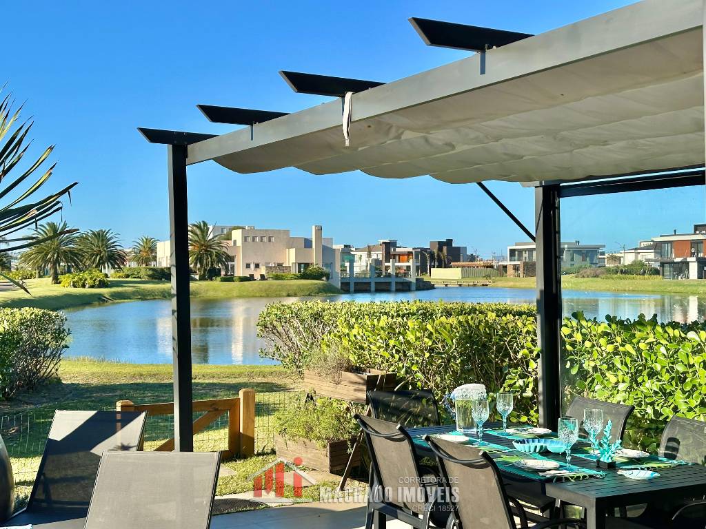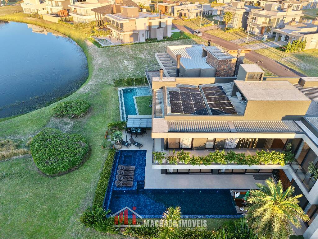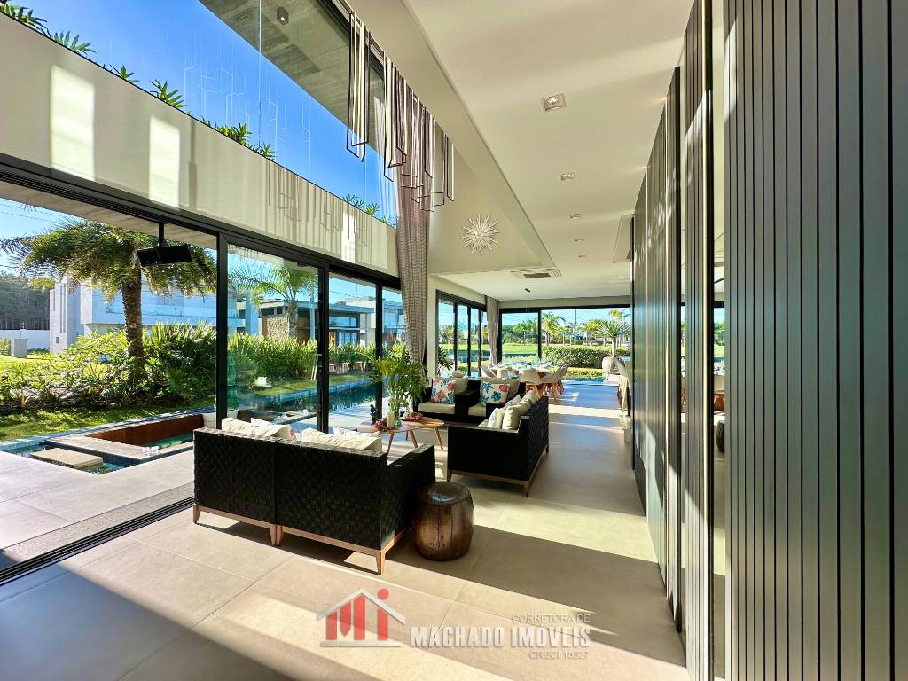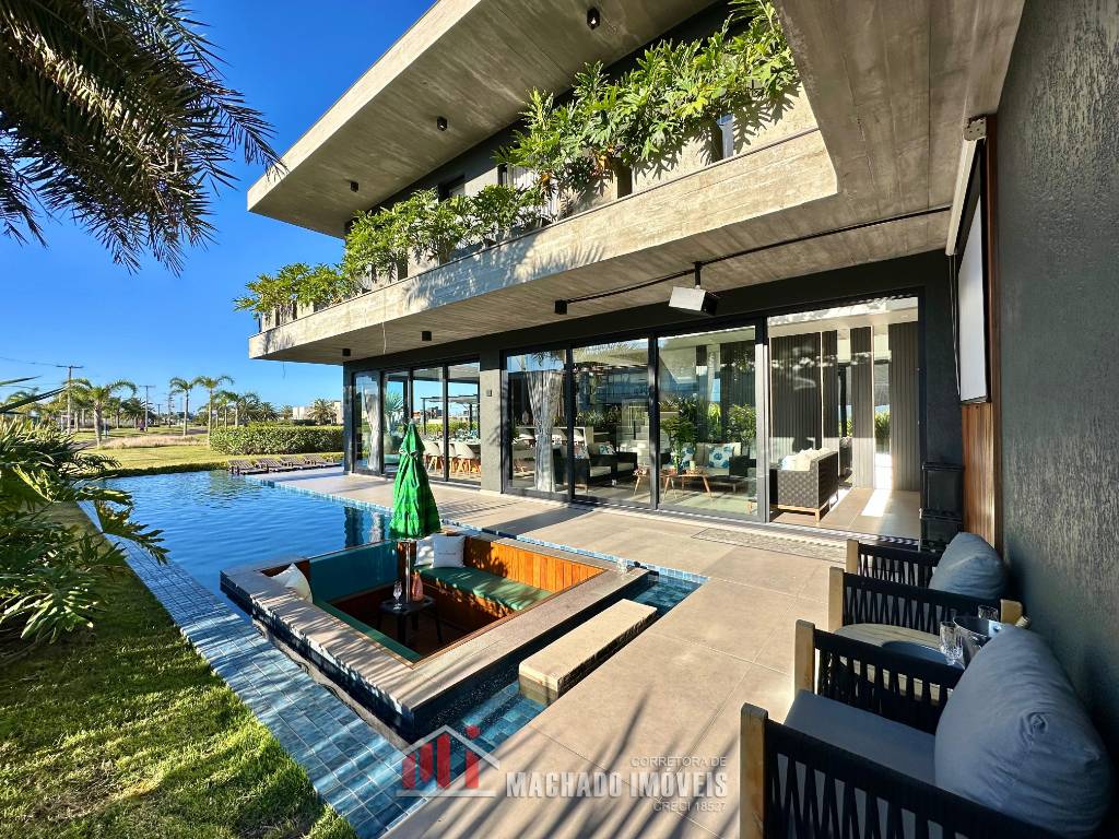 COSTA SERENA- condomínio fechado a beira mar, casa 05 suítes (01 térrea), climatizadas, além de ambientes integrados de estar, jantar e cozinha gourmet, sala de TV, lavabos interno e externo, despensa e lavanderia com sistema de tulha integrada ao pavimento superior, finamente mobiliada e decorada, equipada com chopeira inteligente, cervejeira, adega climatizada, pergolado com parrilla, ar-condicionado de teto e placas solares em todo o telhado, paisagismo assinado pela recanto Tropical com 07 grupos de irrigação automatizados com 2 poços de água sem a presença de ferro, piscina de concreto com borda infinita, raia para natação, 80m³ de água aquecida, área molhada com espreguiçadeiras, espaço de hidromassagem e sala de entretenimento com telão retrátil e sistema de som, toda a residência é amplamente automatizada, com controle via smartphone e assistente virtual Alexa. Área de uso comum 722, 90m² e 370m² de casa mais varanda e sacadas, terreno esquina 544, 04m² vista lago e área verde. Estuda propostas, dação de 35% Aceita financiamento bancário