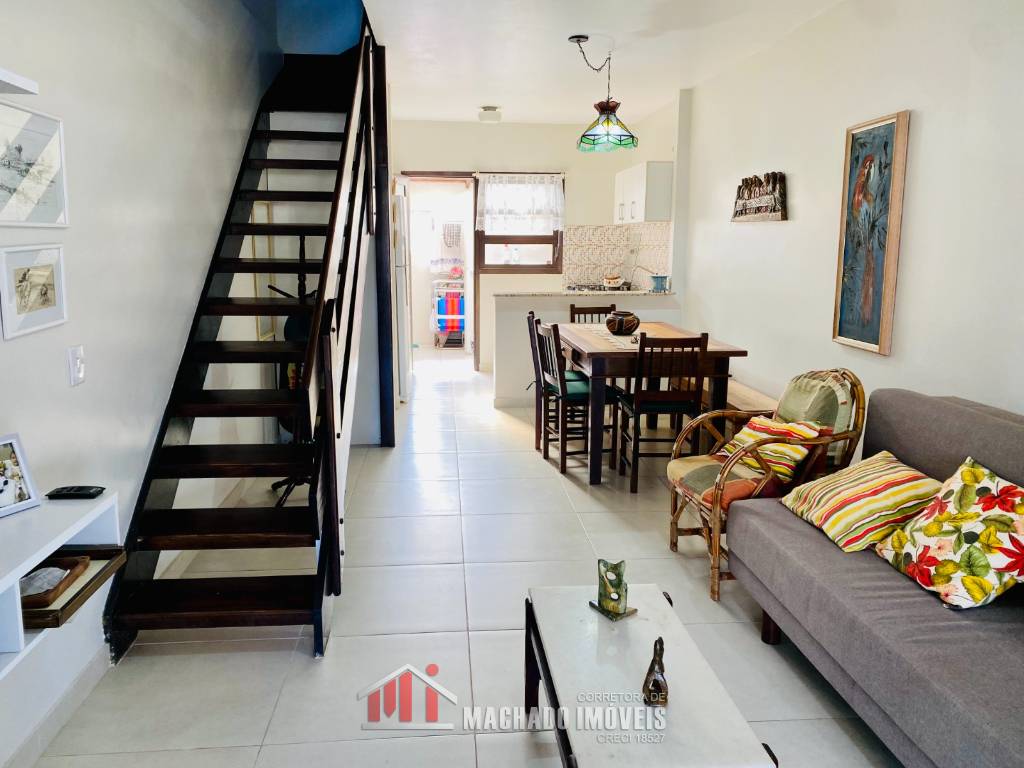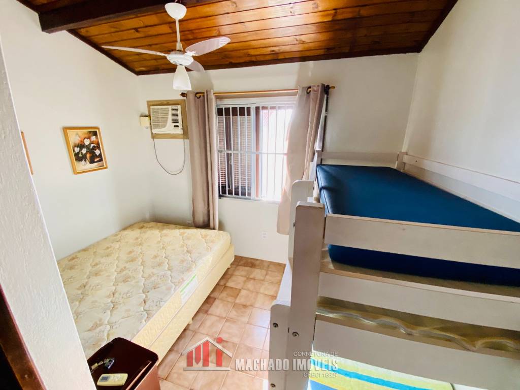 Sobrado 2 dormitórios, com acomodação para até 8 pessoas, 2 camas de casal, 1 beliche e 1 sofá cama na sala, TV com antena SKY, ventilador de teto e um dormitório com solit, máquina de lavar roupas, não tem internet, estacionamento na frente, pátio fechado, apenas 350m/mar
